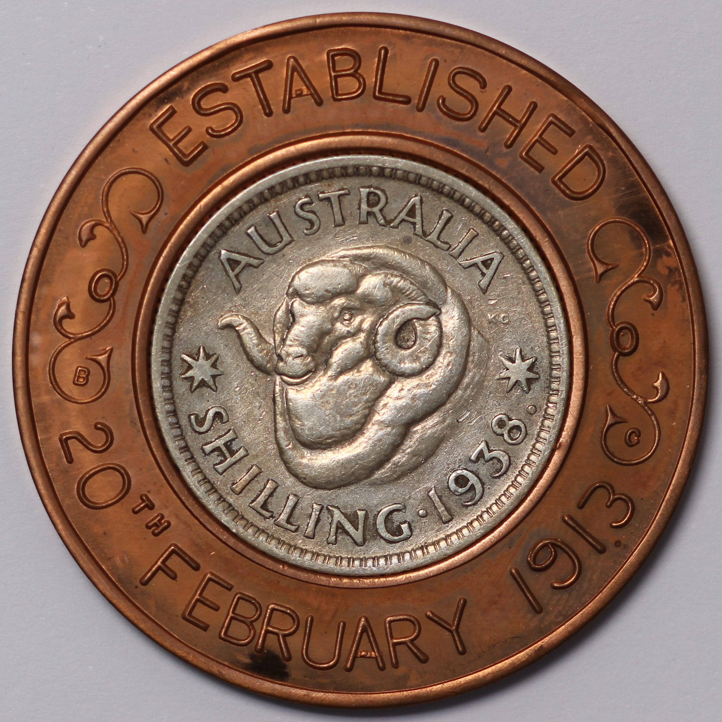 2015 Australian Numismatic Society Medallion Encased 1938 Shilling
