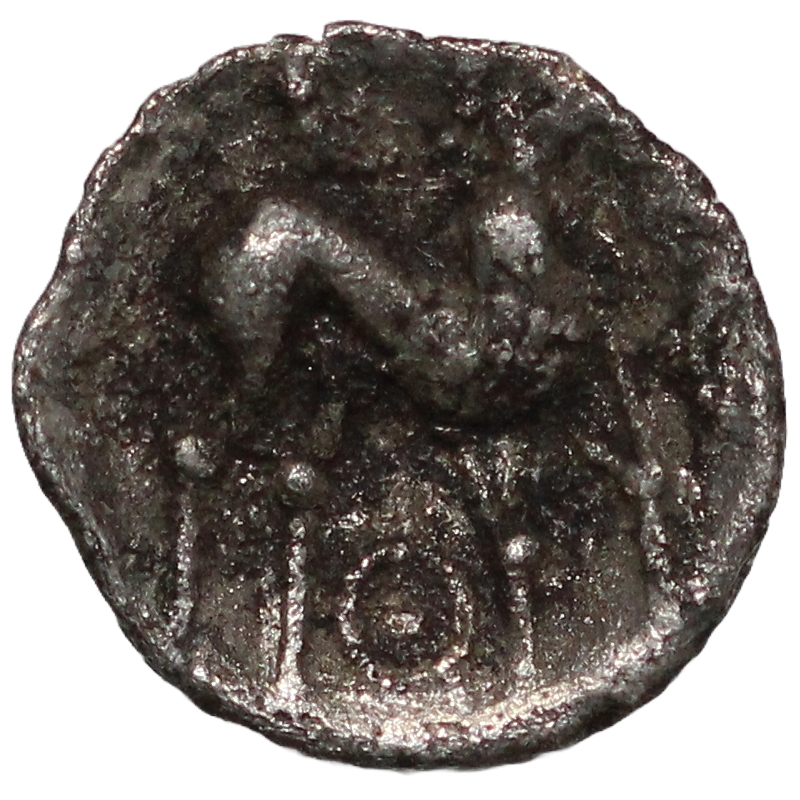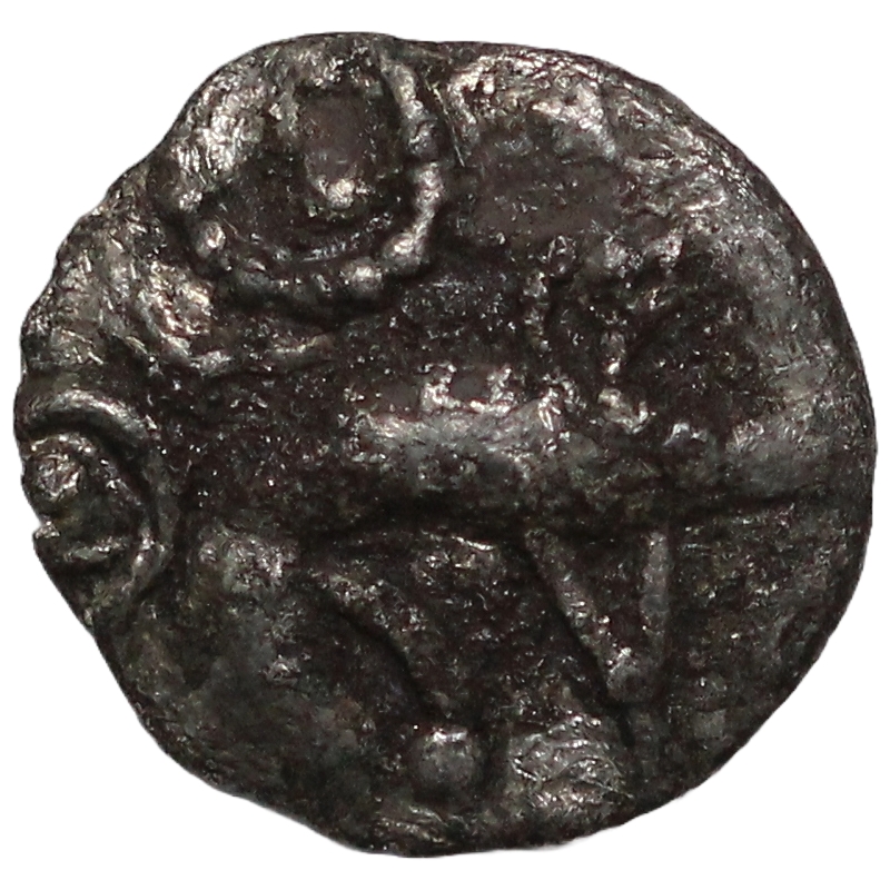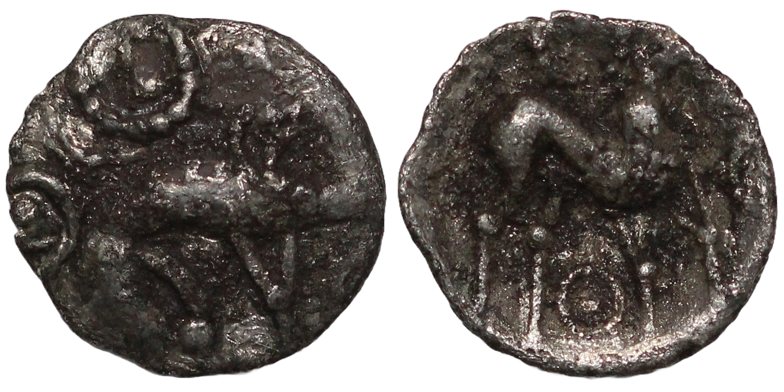 BRITISH CELTIC, North Eastern region. Corieltauvi. Uninscribed. Circa 70-10 BC. AR Unit (16mm, 1.31g). Boar right; two linear circles with central pellet above and another behind / Horse right, large linear circle above; small linear circle with central pellet below. S. 397 var.