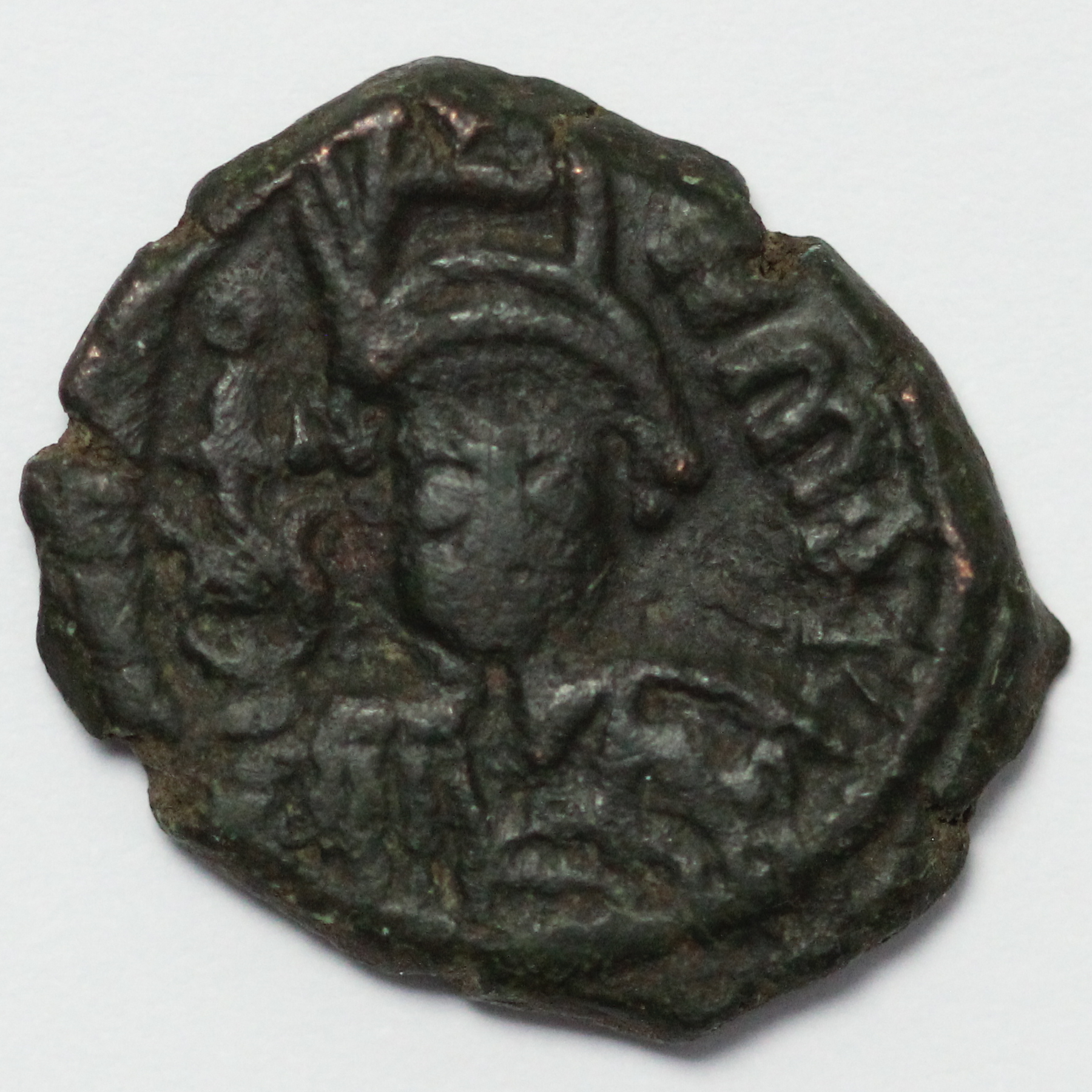 Byzantine. Maurice Tiberius (AD 582-602). Æ Half Follis (5.43g, 21mm). Dated RY 10 (AD 591/2). Constantinople mint.
