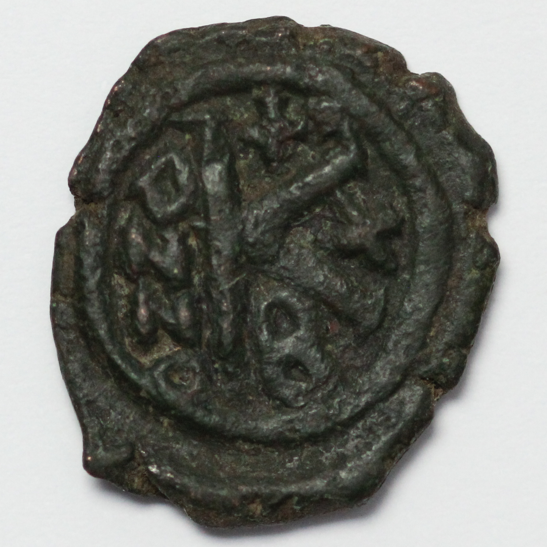 Crowned and cuirassed facing bust, holding globus cruciger and shield. / Large K; cross above, A/N/N/O – X across fields; B below.