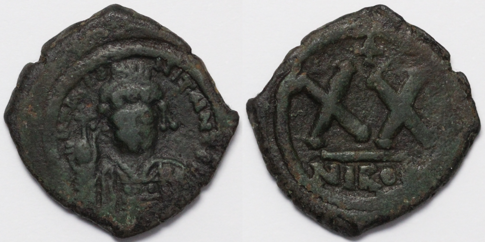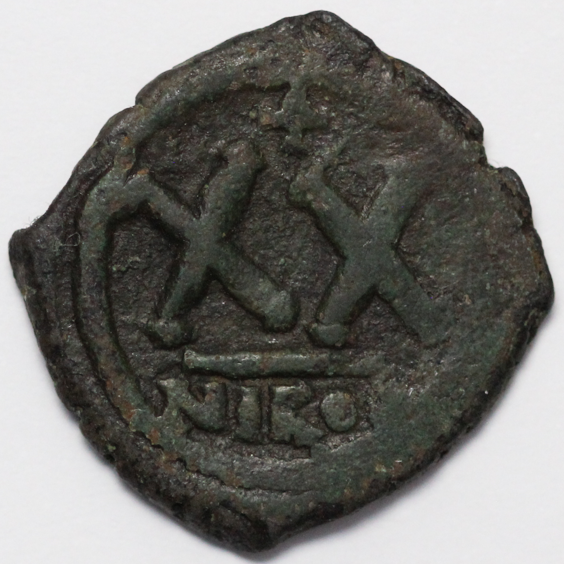 Byzantine. Tiberius II Constantine (AD 578-582). Æ Half Follis (7.52g, 25mm). Nicomedia mint.
