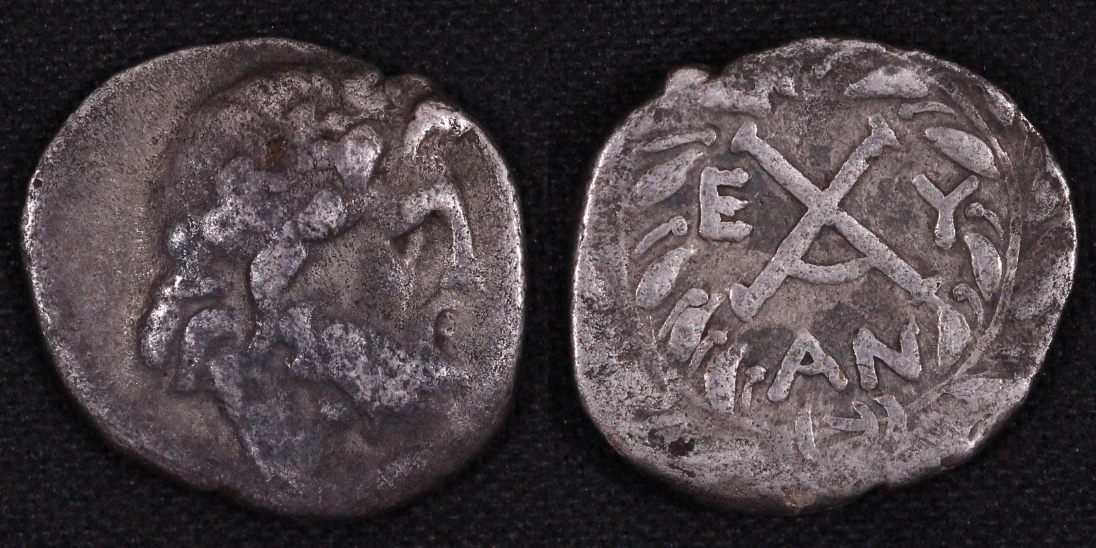 Achaean League, Antigoneia (Mantinea), Triobol, 188-180 BC, laureate head of Zeus right, rev. an below, e-y at sides, 2.11g (BCD 1492.4; McClean 6476-8; BMC 102-3).