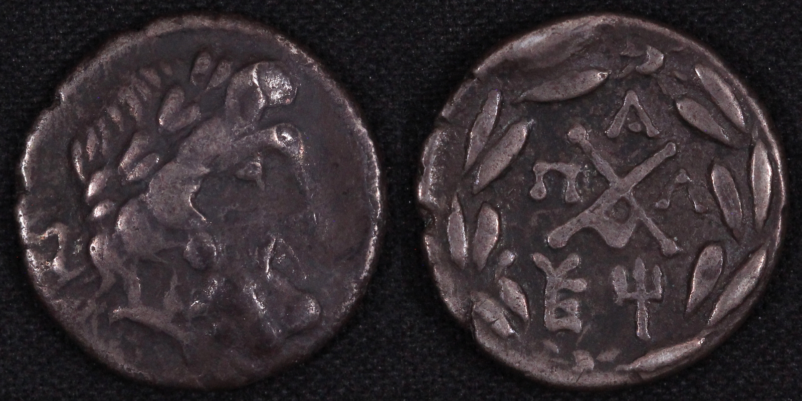 Achaean League, Pallantion, Triobol, c. 100 BC, laureate head of Zeus right, rev. trident below, 2.05g (BCD 1593.2; McClean 6507ff; BMC 124).