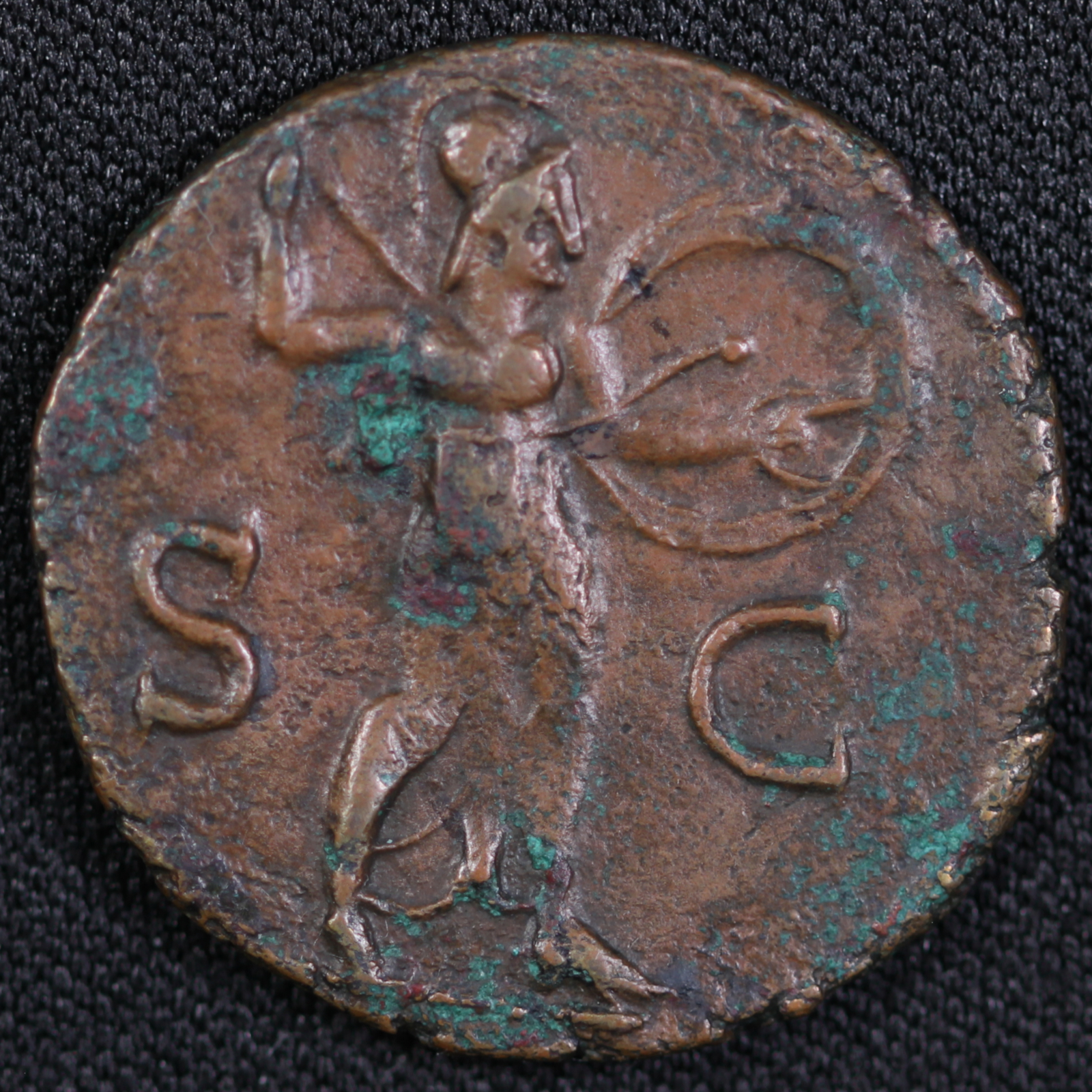 Rev: S C across field; Minerva advancing right, brandishing spear and holding round shield.