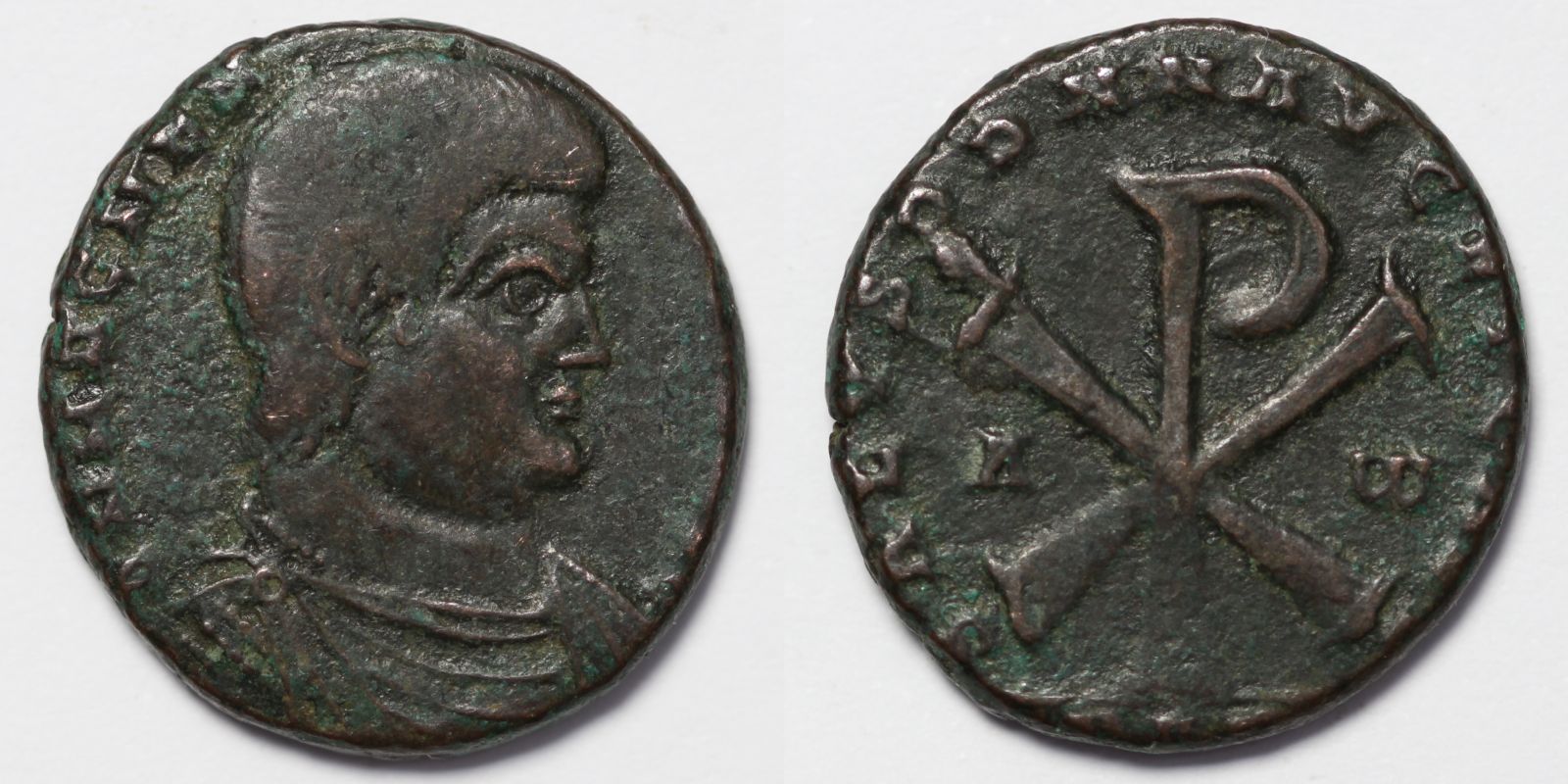 Rev: SALVS DD NN AVG ET CAES; Large Chi-Rho flanked by A-Ѡ; [TRP] in exergue.