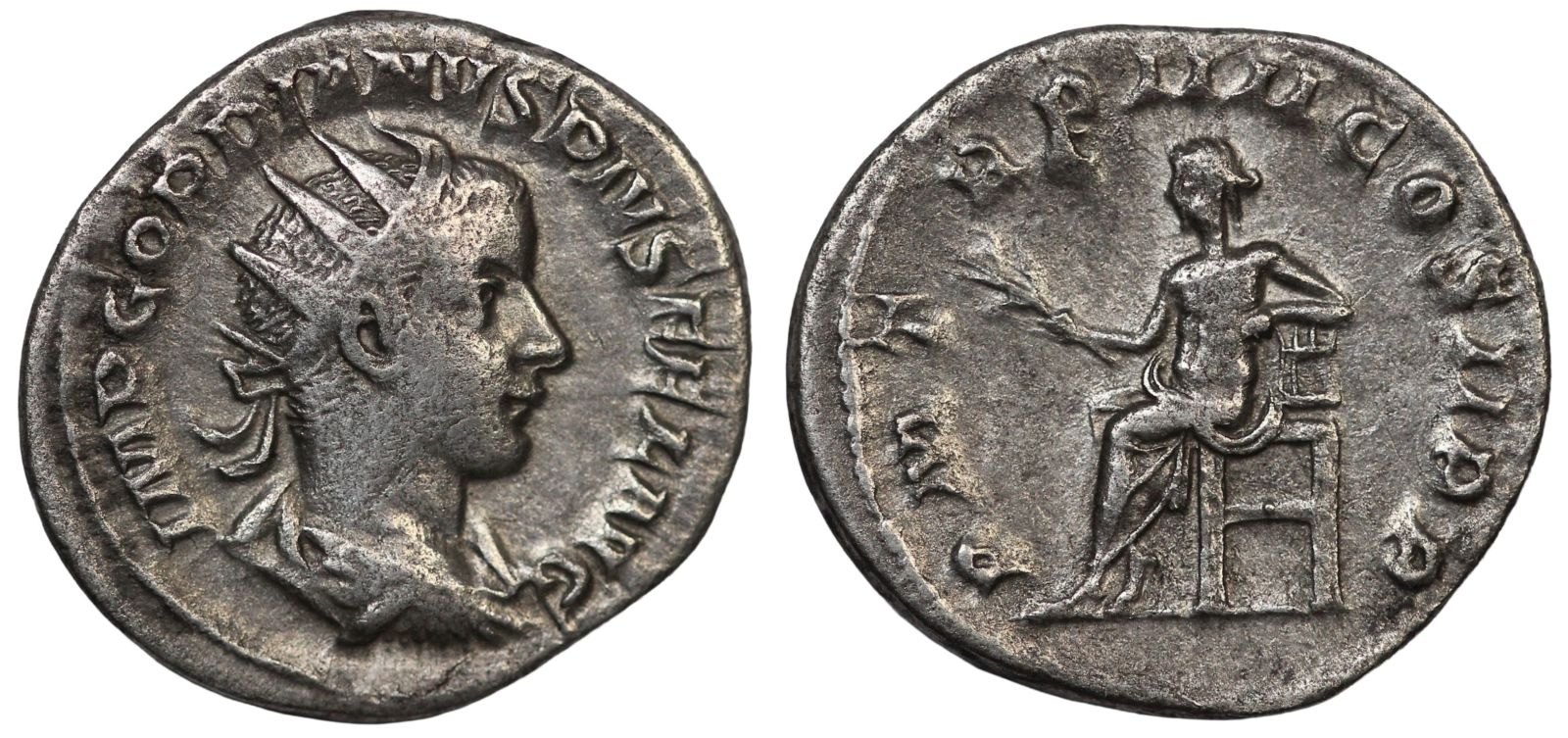 - Type:Â Bust of Gordian III, radiate, draped, cuirassed, right