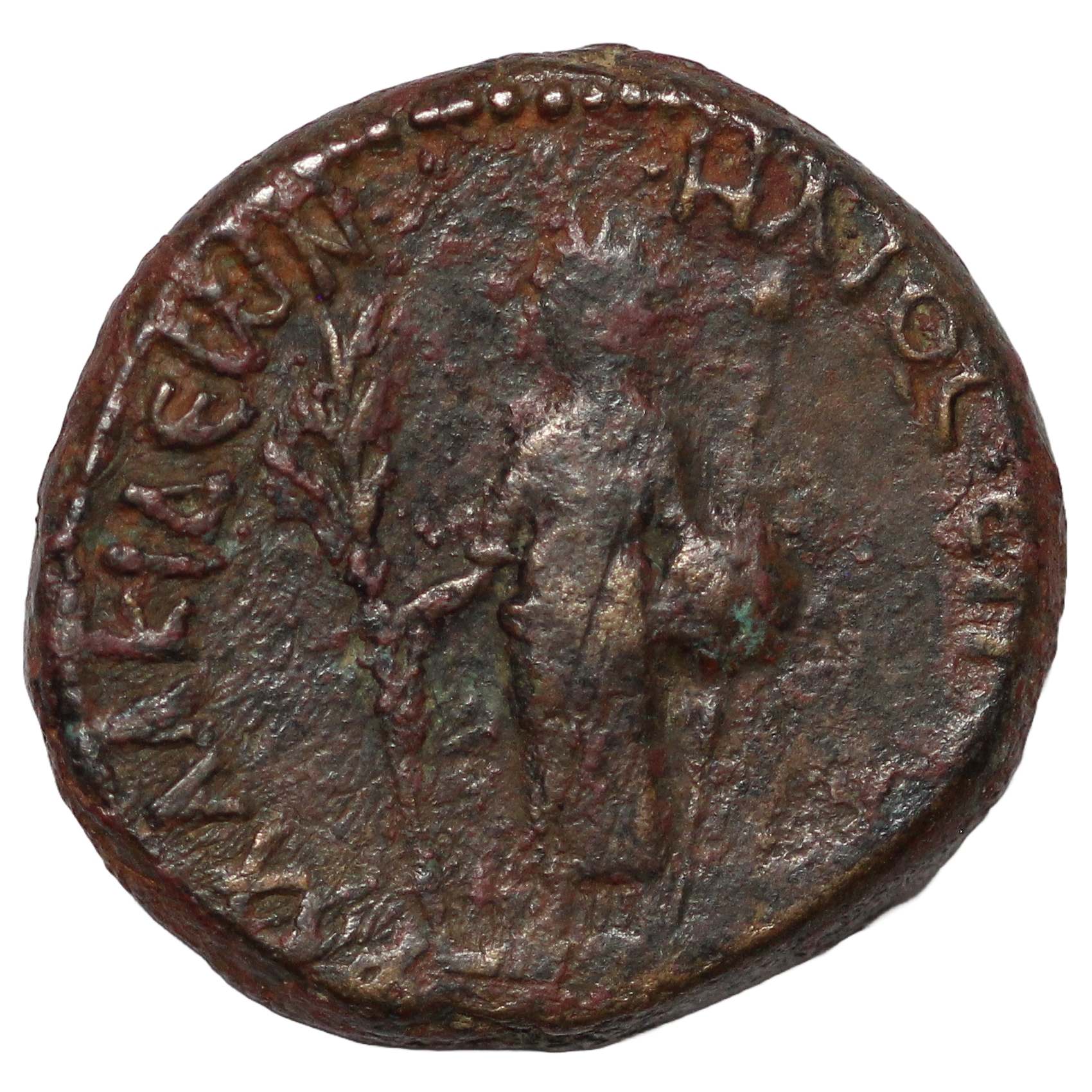 Laureate head right / Helios standing left, holding palm branch, spear and shield.