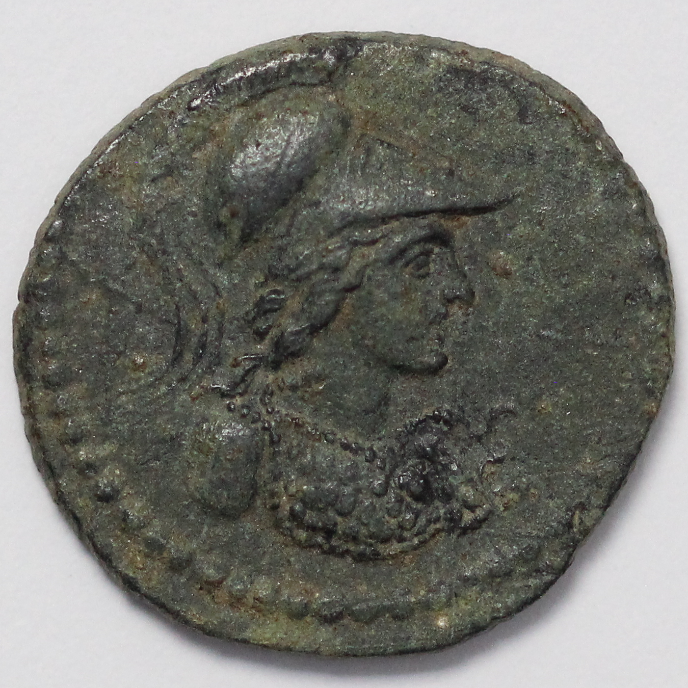 Obv: Draped bust of Athena, wearing Corinthian helmet, r., with aegis.