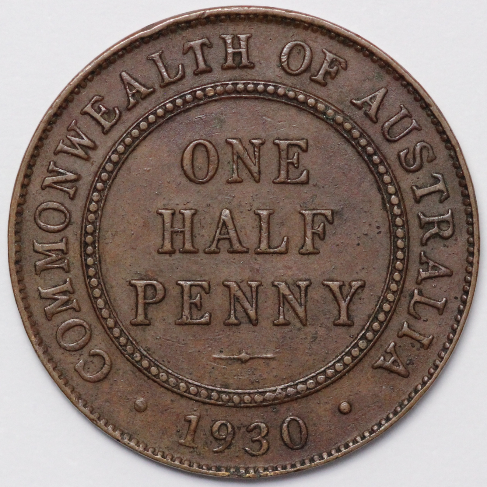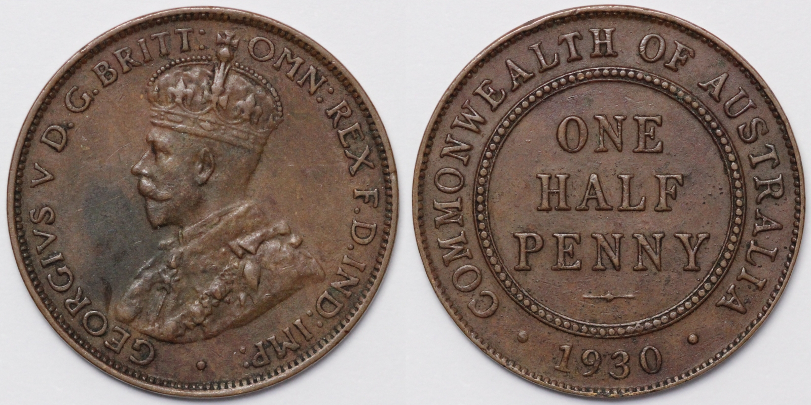 Australia 1930 George V Halfpenny 1/2D. Key date, low mintage.