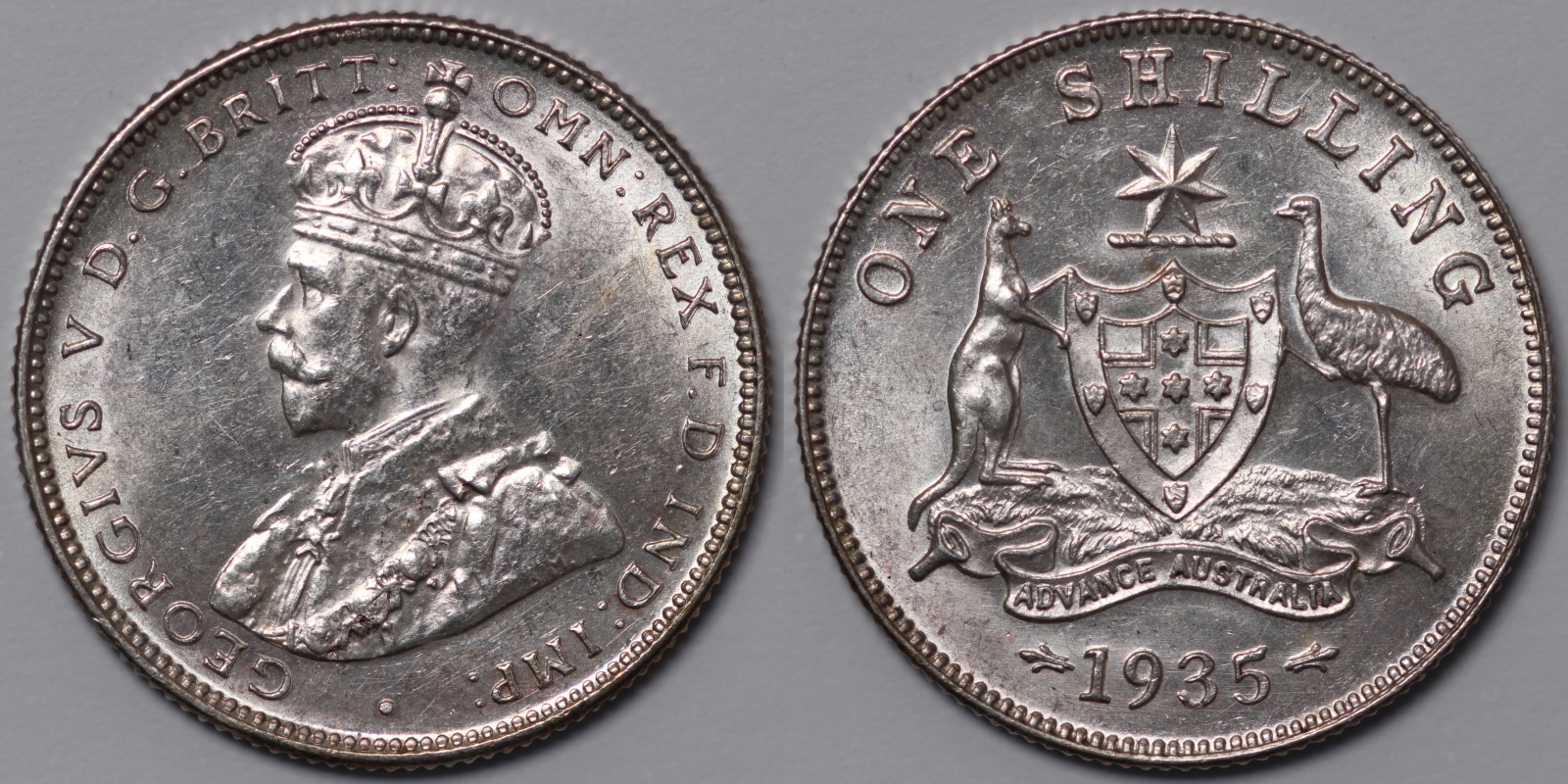 Australia 1935 Shilling 1/- George V Sterling Silver Coin