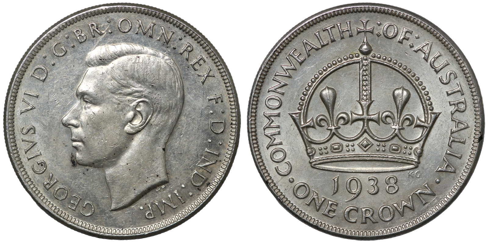 Scarcer date of a two-year type – the 1938 Crown has a mintage of only 101,600 pieces.