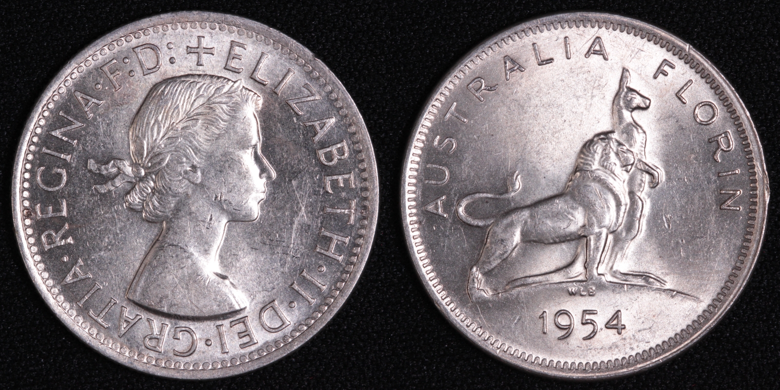 Australia 1943 Florin 2/- George VI Sterling Silver Coin