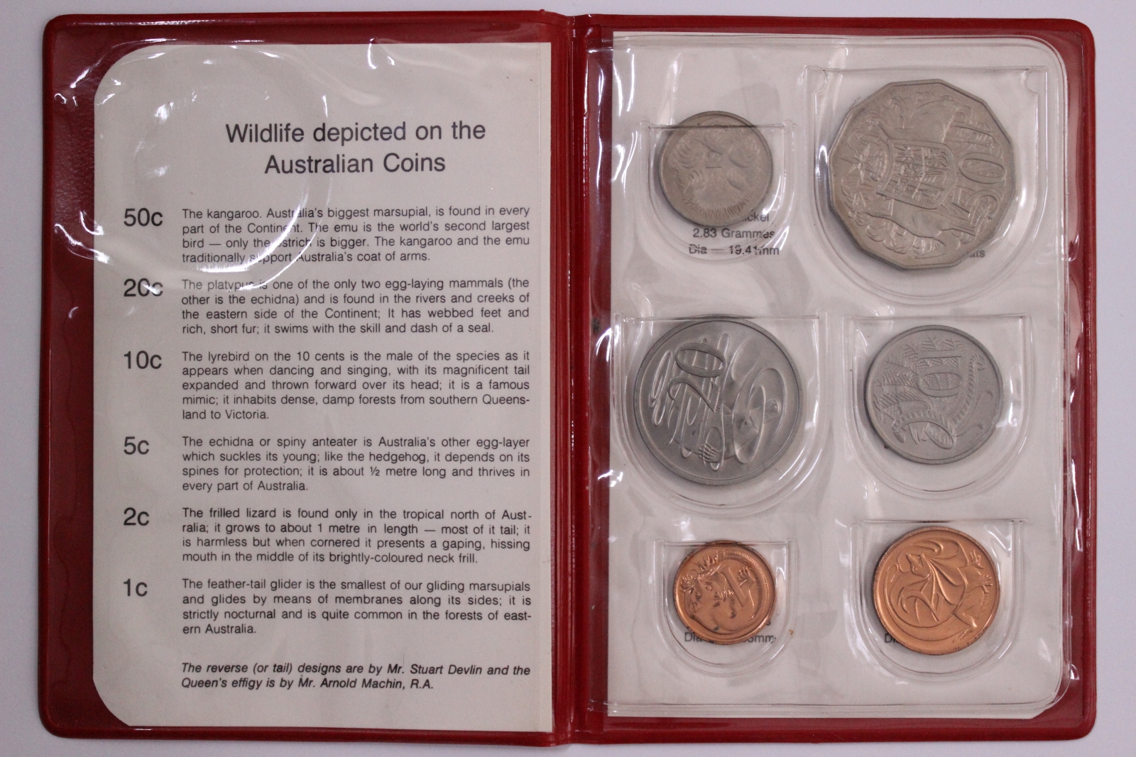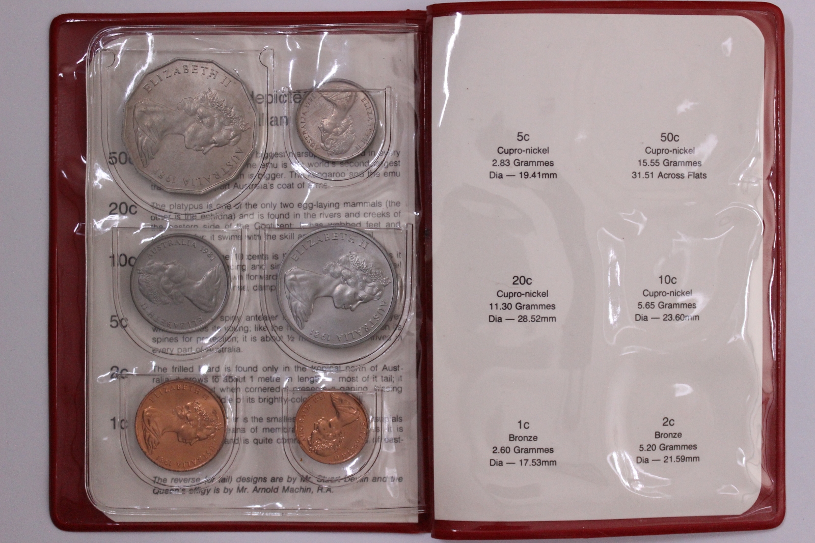 Issued by the Royal Australian Mint, the 1981 uncirculated mint set features 6 circulating coin designs housed in an official red wallet.