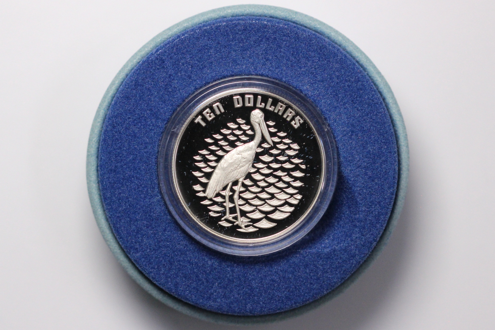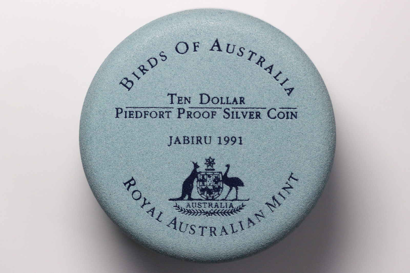 Royal Australian Mint 1991 Birds of Australia Jabiru $10 Piedfort Proof Silver Coin with presentation case and CoA. Note the outer cardboard box is not included.
