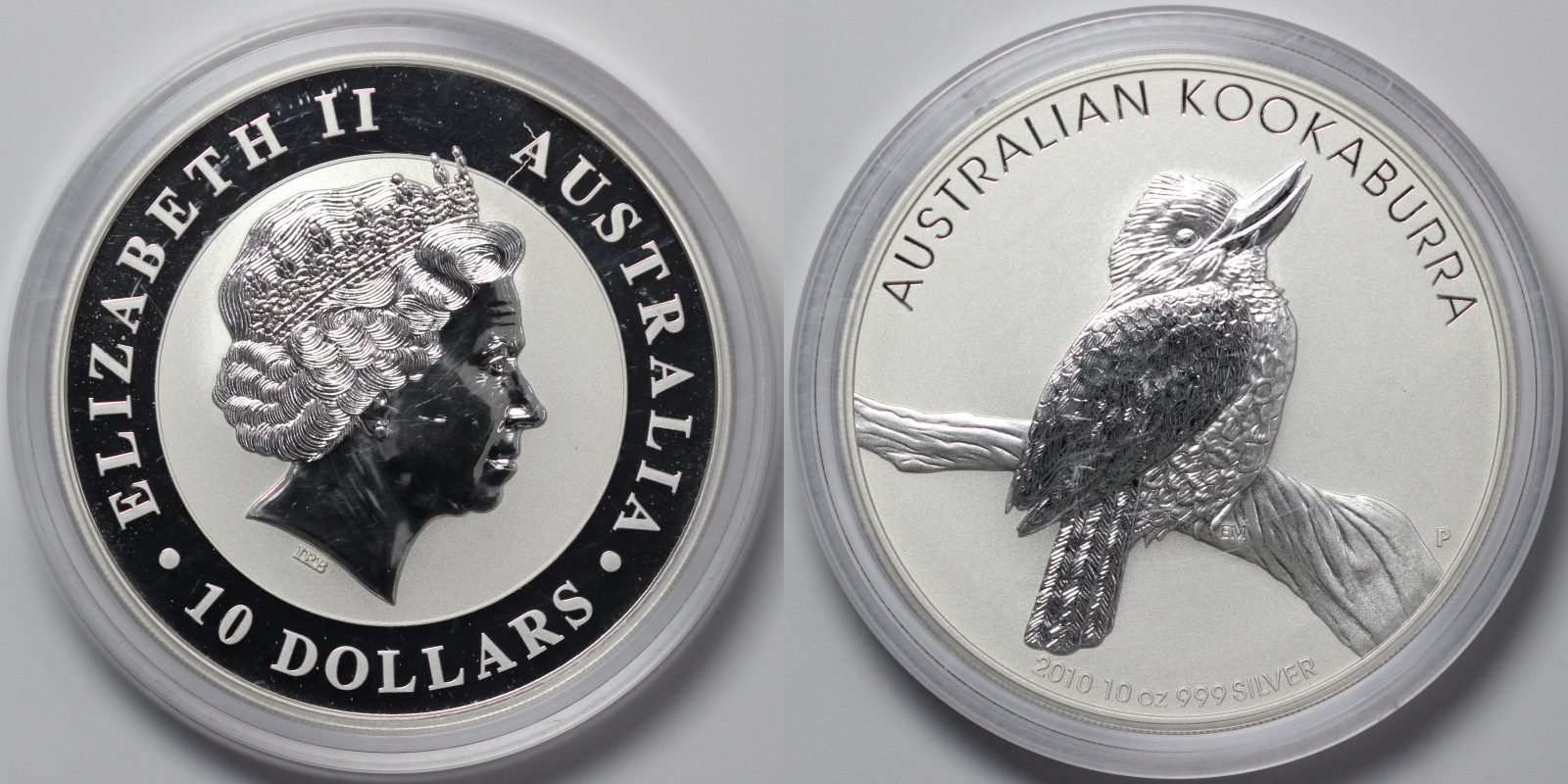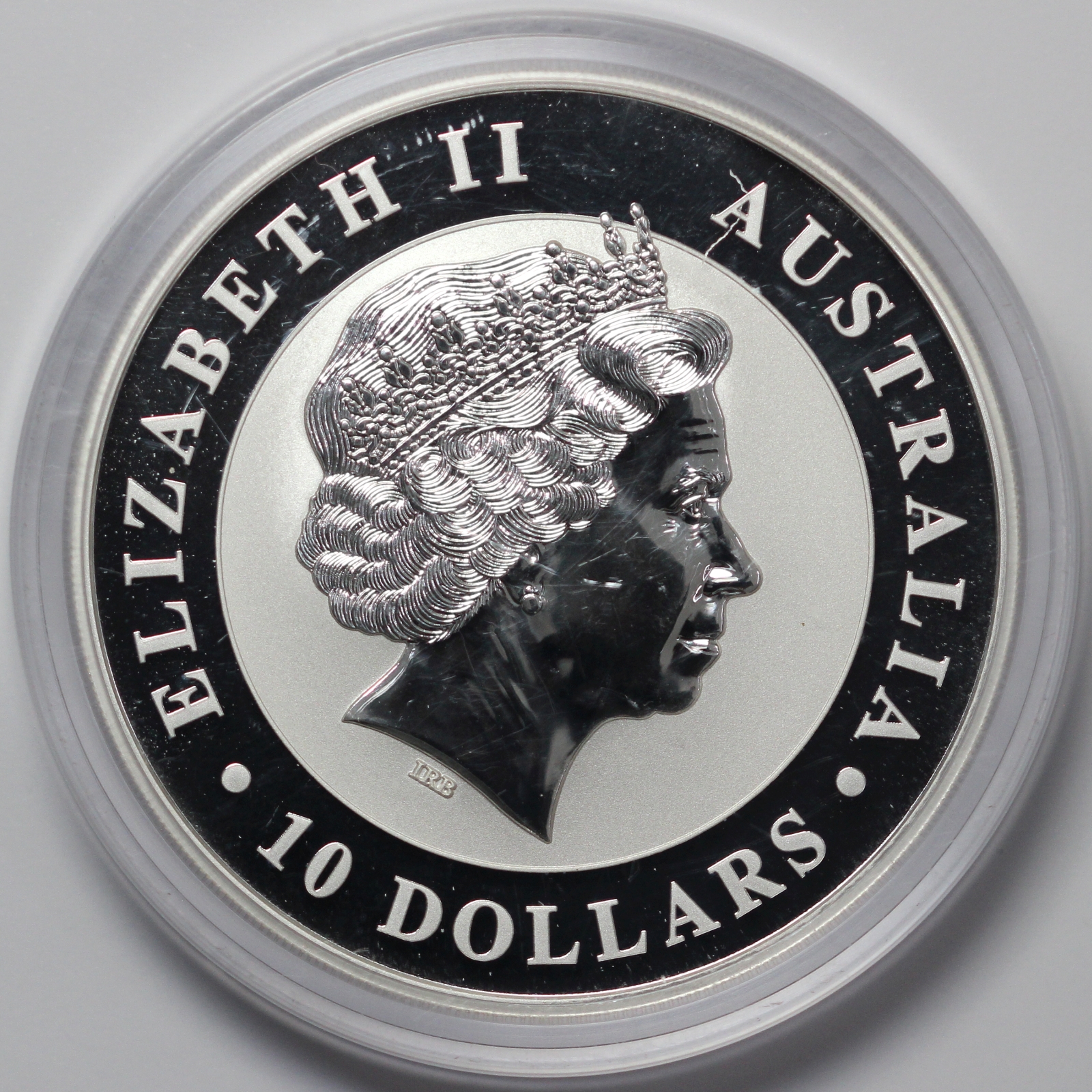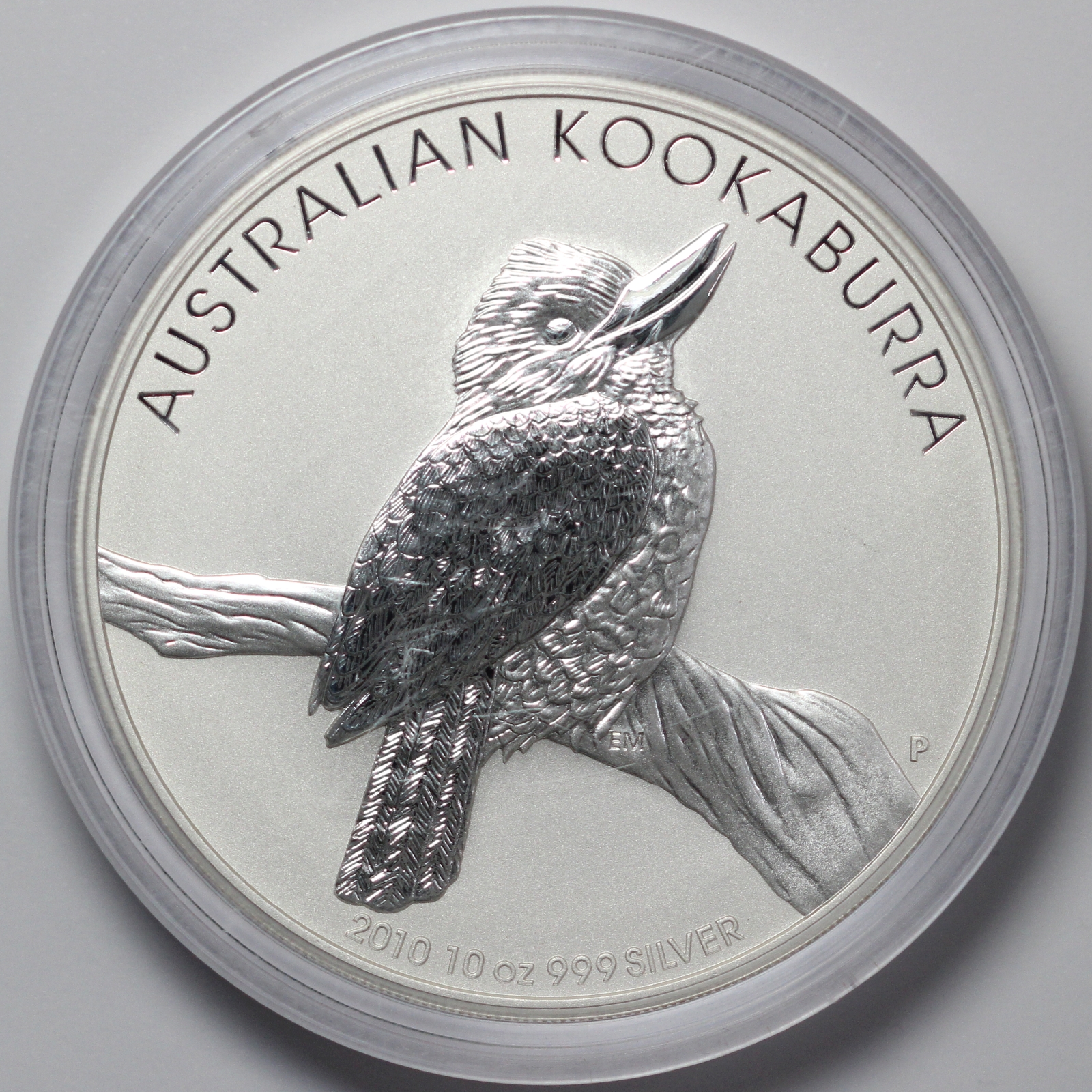 Perth Mint 2010 $10 10oz 999 Silver Australian Kookaburra Bullion Coin in capsule.