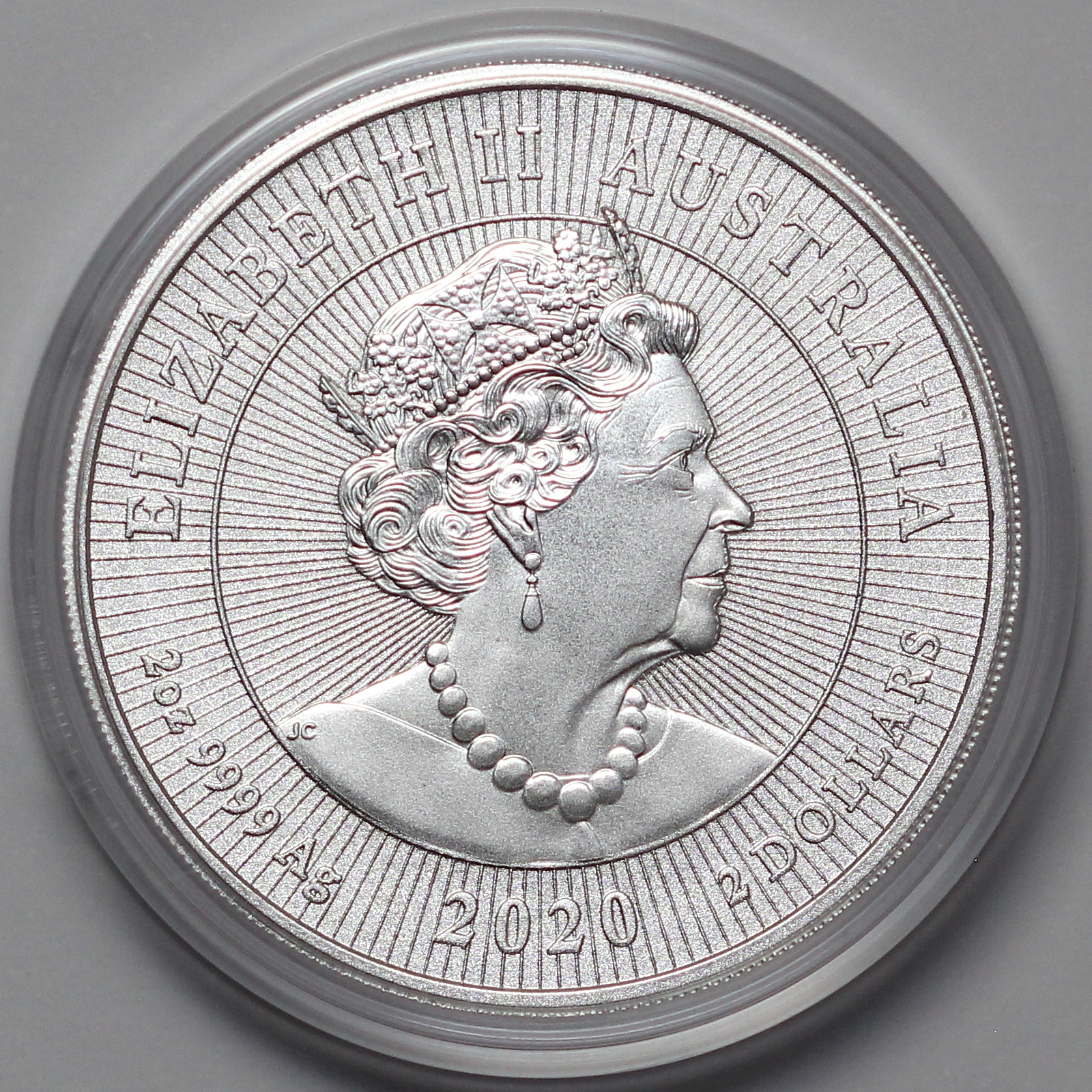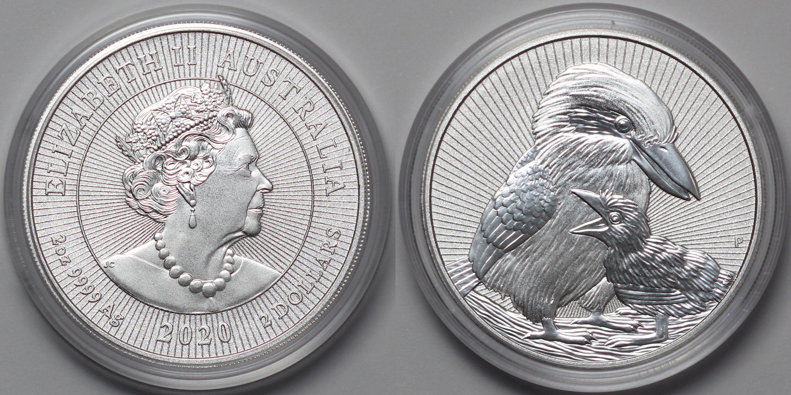 Perth Mint 2020 Mother & Baby Kookaburra 2oz Silver Bullion Piedfort Coin in capsule.