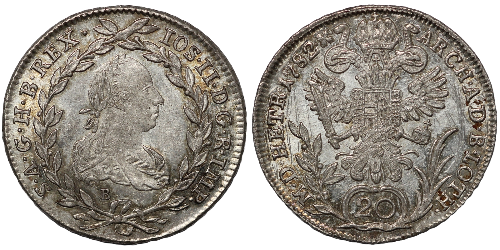 Austria Holy Roman Empire 1782-B 20 Kreuzer. Joseph II. KM# 2068.2.