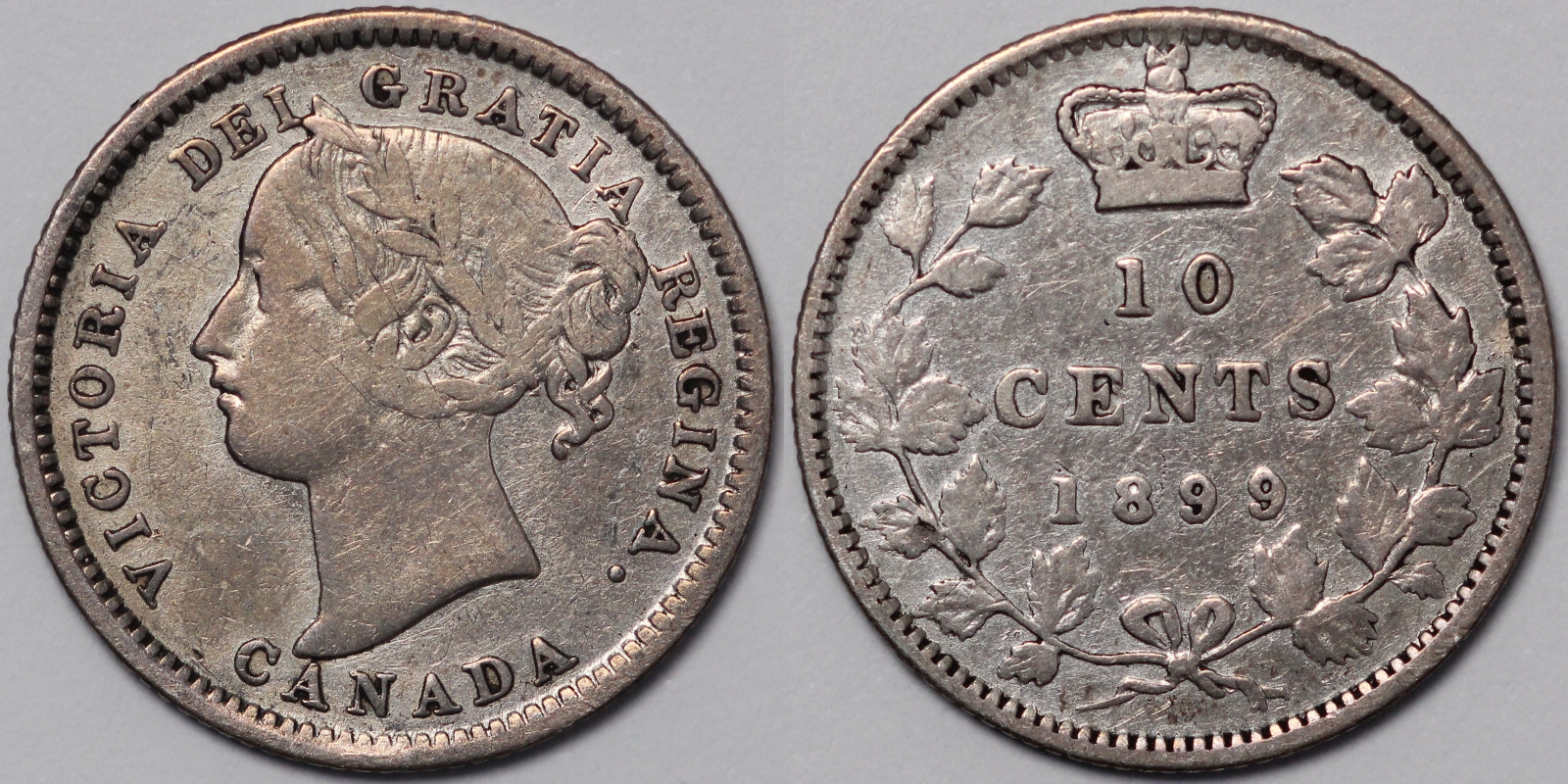 Canada 1899 10 Cents Small 9s. Victoria. KM#3.