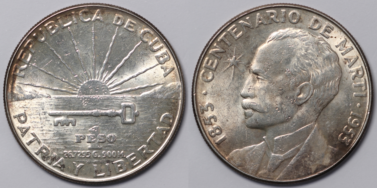 Patria Y Libertad 1953 1 Peso. Commemorative issue: Centennial of Jose Marti. KM-29.