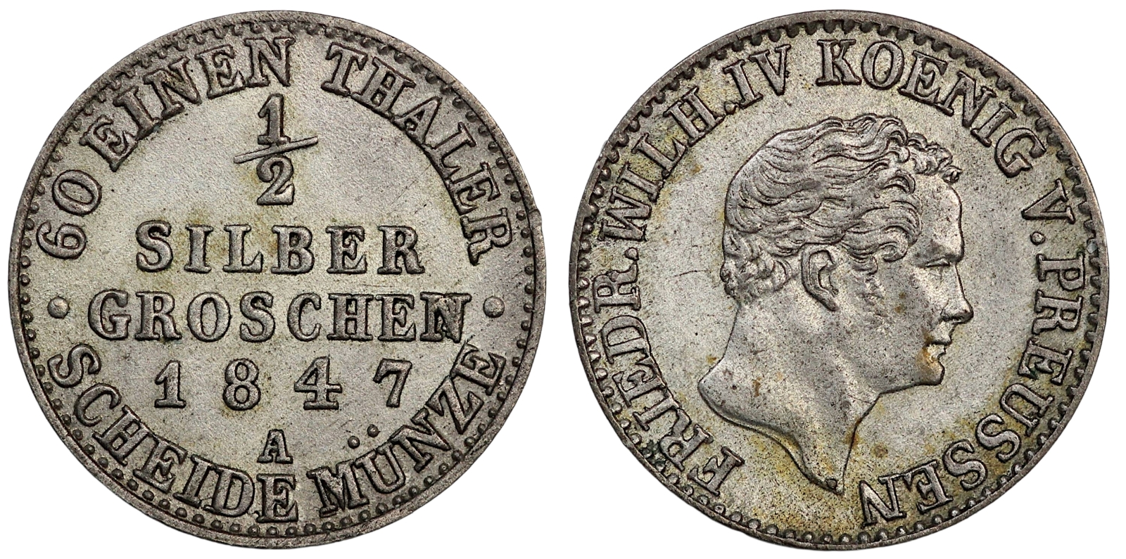 German States 1847-A PRUSSIA 1/2 Silber Groschen KM# 434 World Silver Coin
