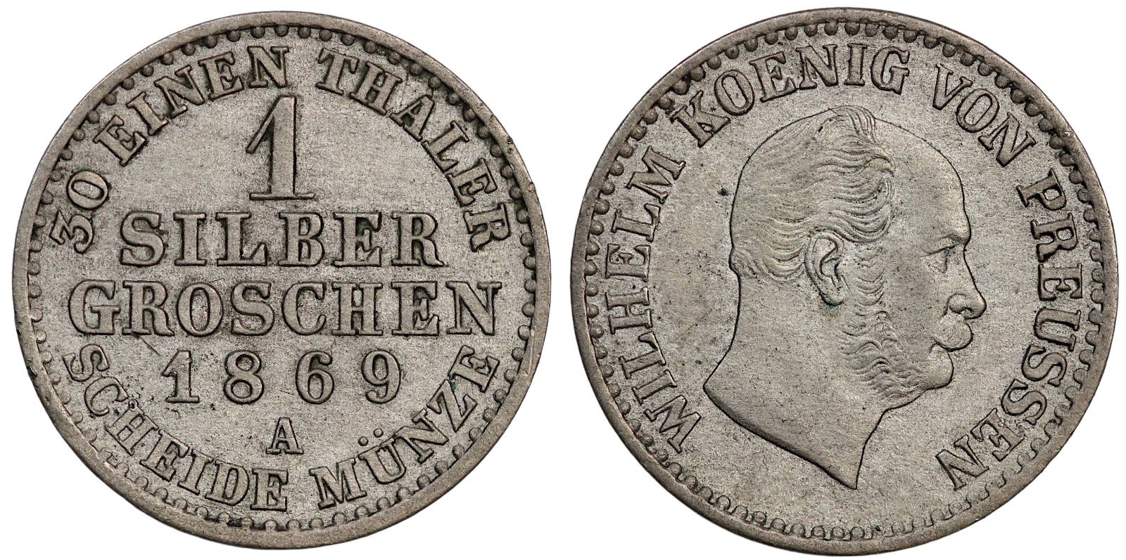 German States PRUSSIA 1869-A Groschen KM# 485 World Silver Coin