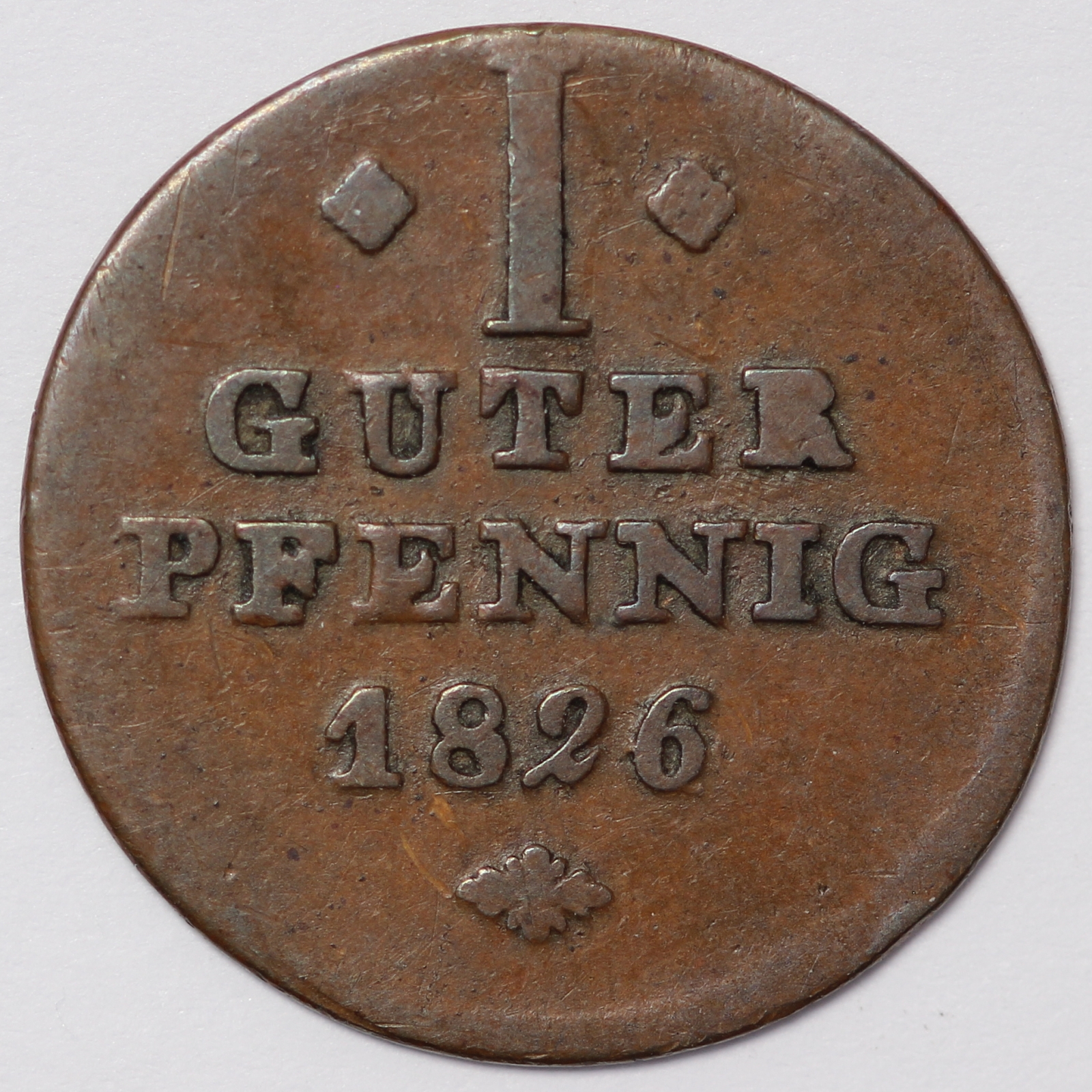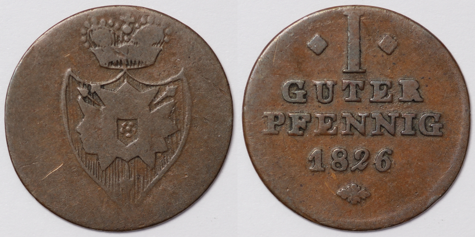 German States – Schaumburg-Lippe 1826 1 Guter Pfennig KM# 35. Scarce.