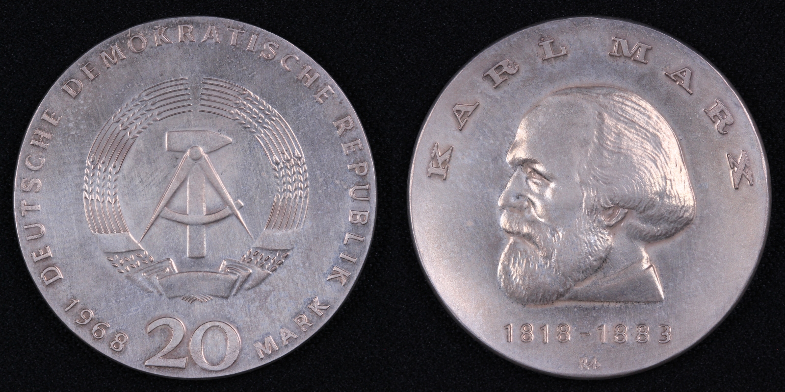 Germany (East) Democratic Republic 1968 20 Mark KM# 21 Karl Marx Silver Coin