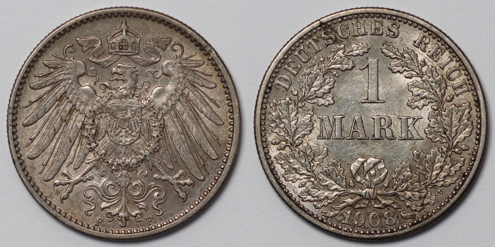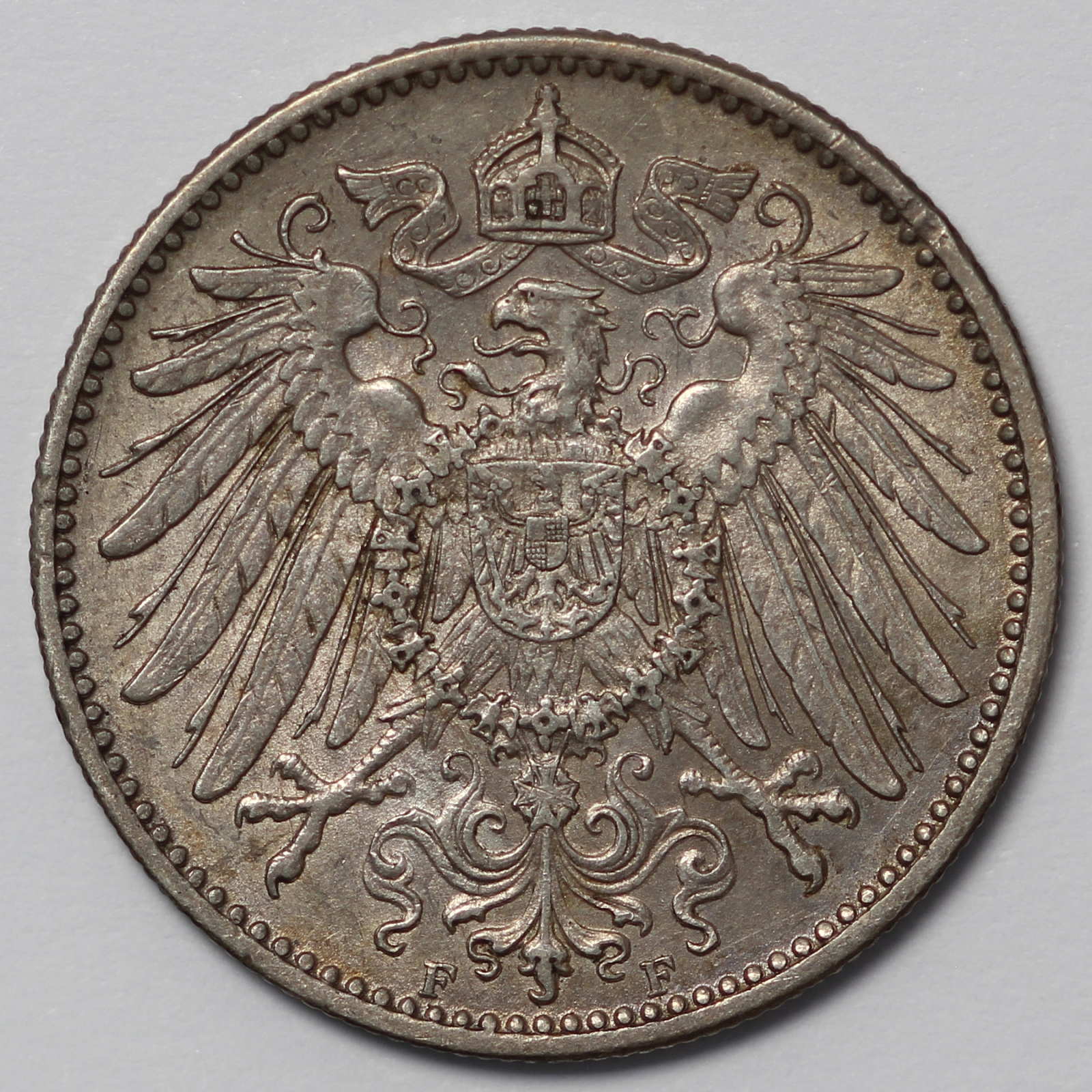 Germany – Empire 1908-F 1 Mark KM# 14 Stuttgart Mint