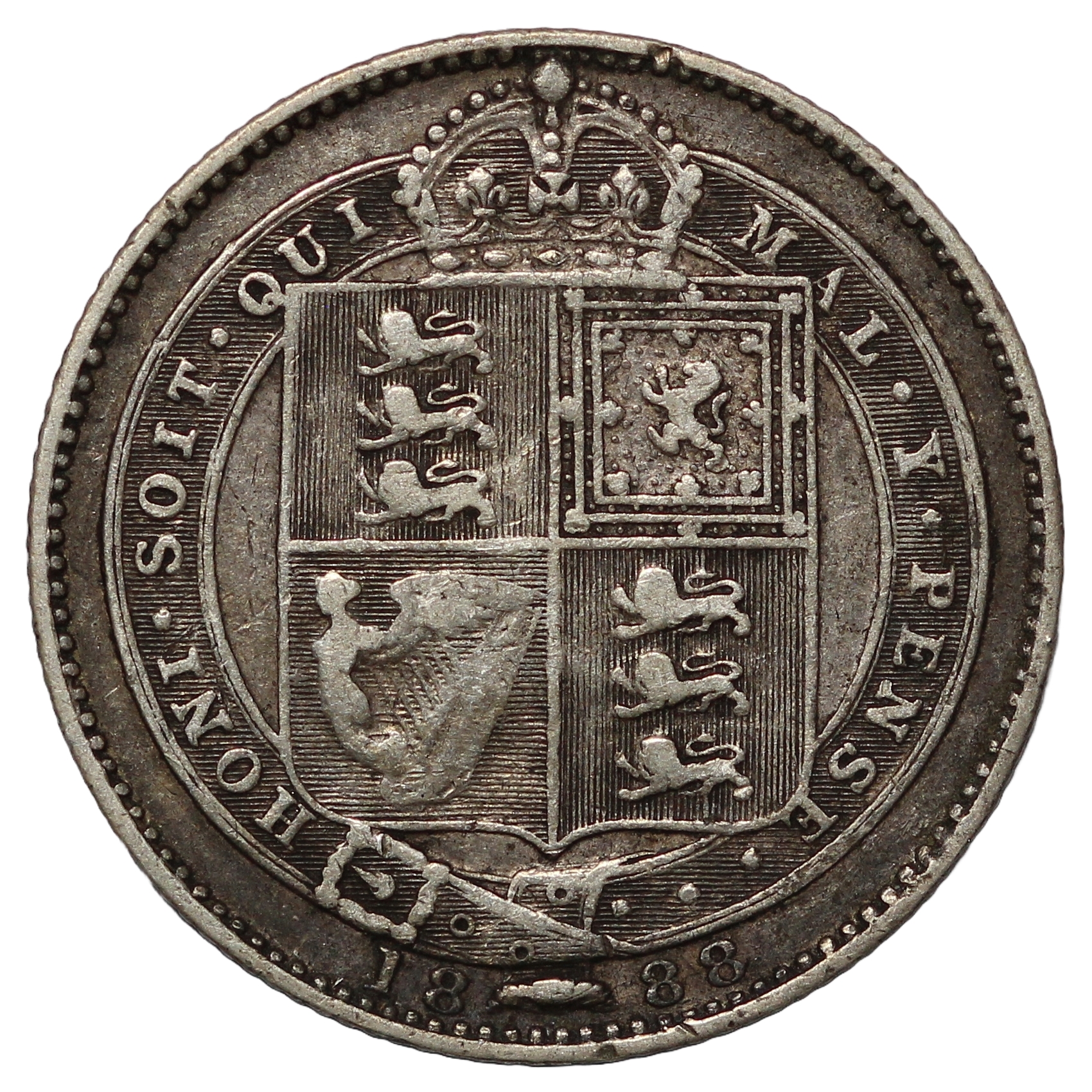 Great Britain 1888 Shilling. Victoria. Small Jubilee head, crowned shield. S-3926.