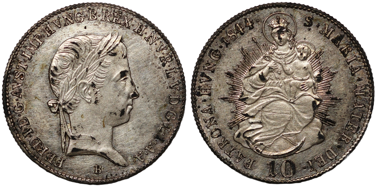Hungary 1844-B 10 Krajczar. Ferdinand V. Virgin Mary & Baby Jesus. KM# 421.