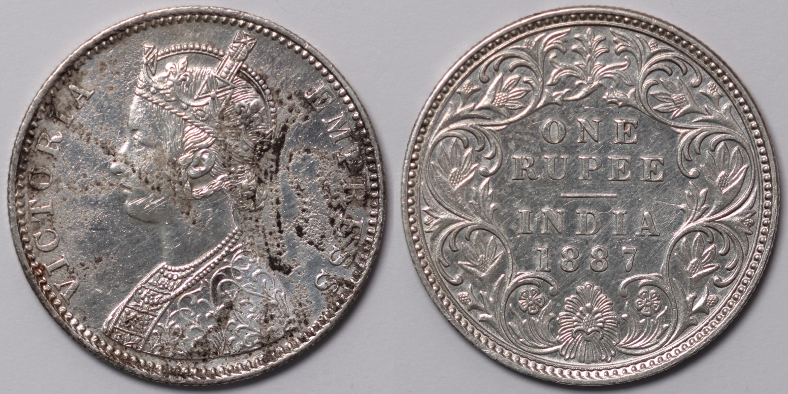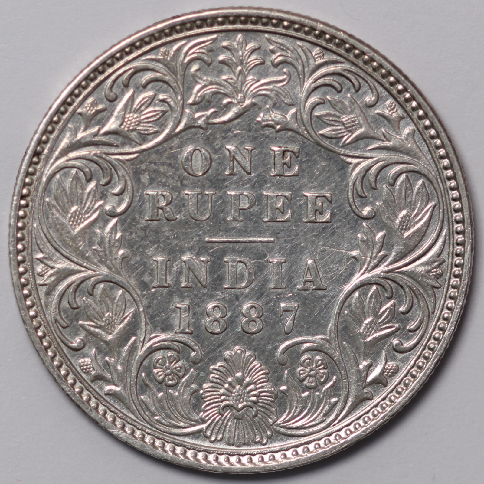 India – British. Victoria. 1887 Rupee. B Raised, Type C Bust, Type I Reverse. Bombay mint. KM#459.
