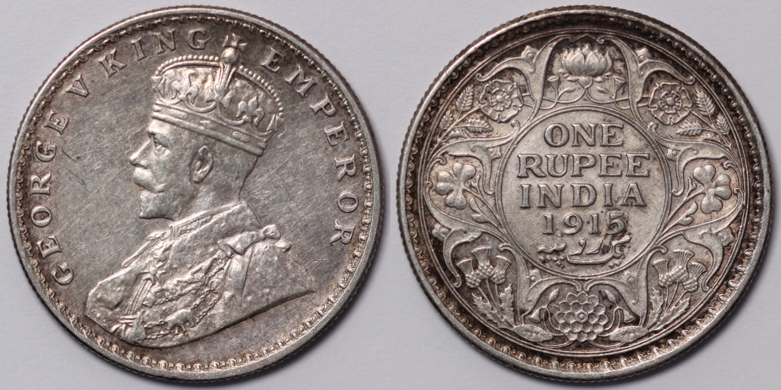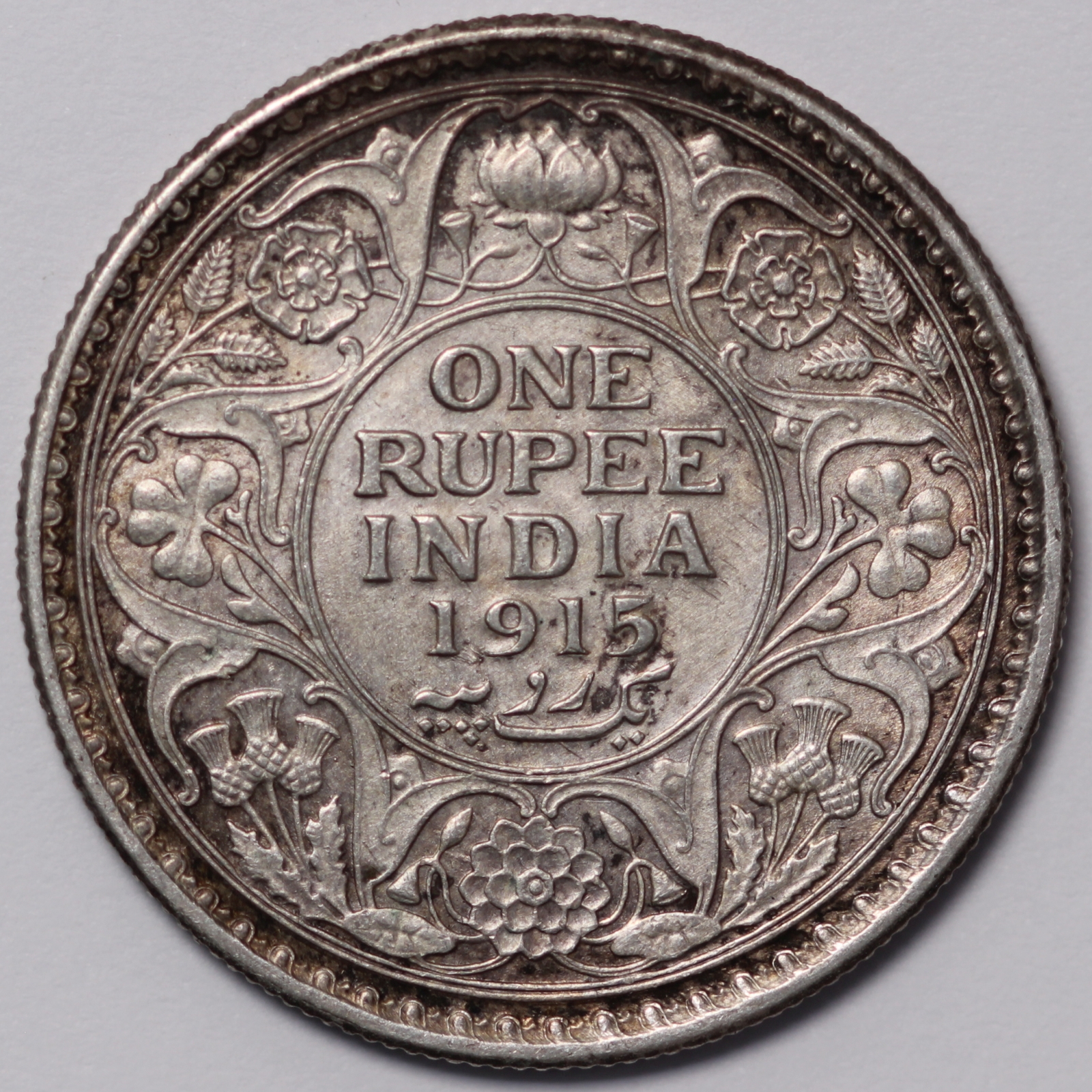 India – British. George V. 1915(c) Rupee. Calcutta mint. KM# 524. Scarcer date.