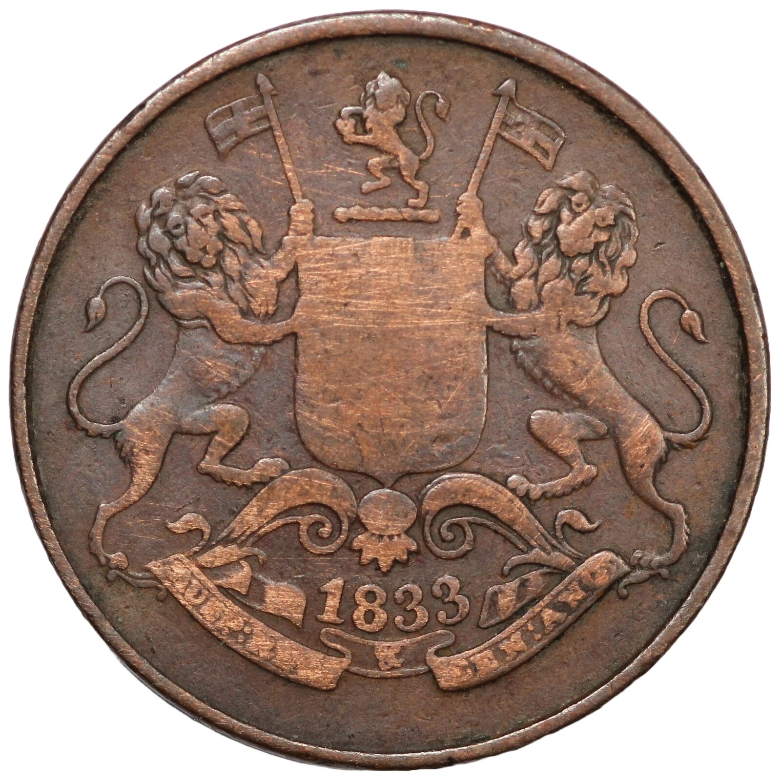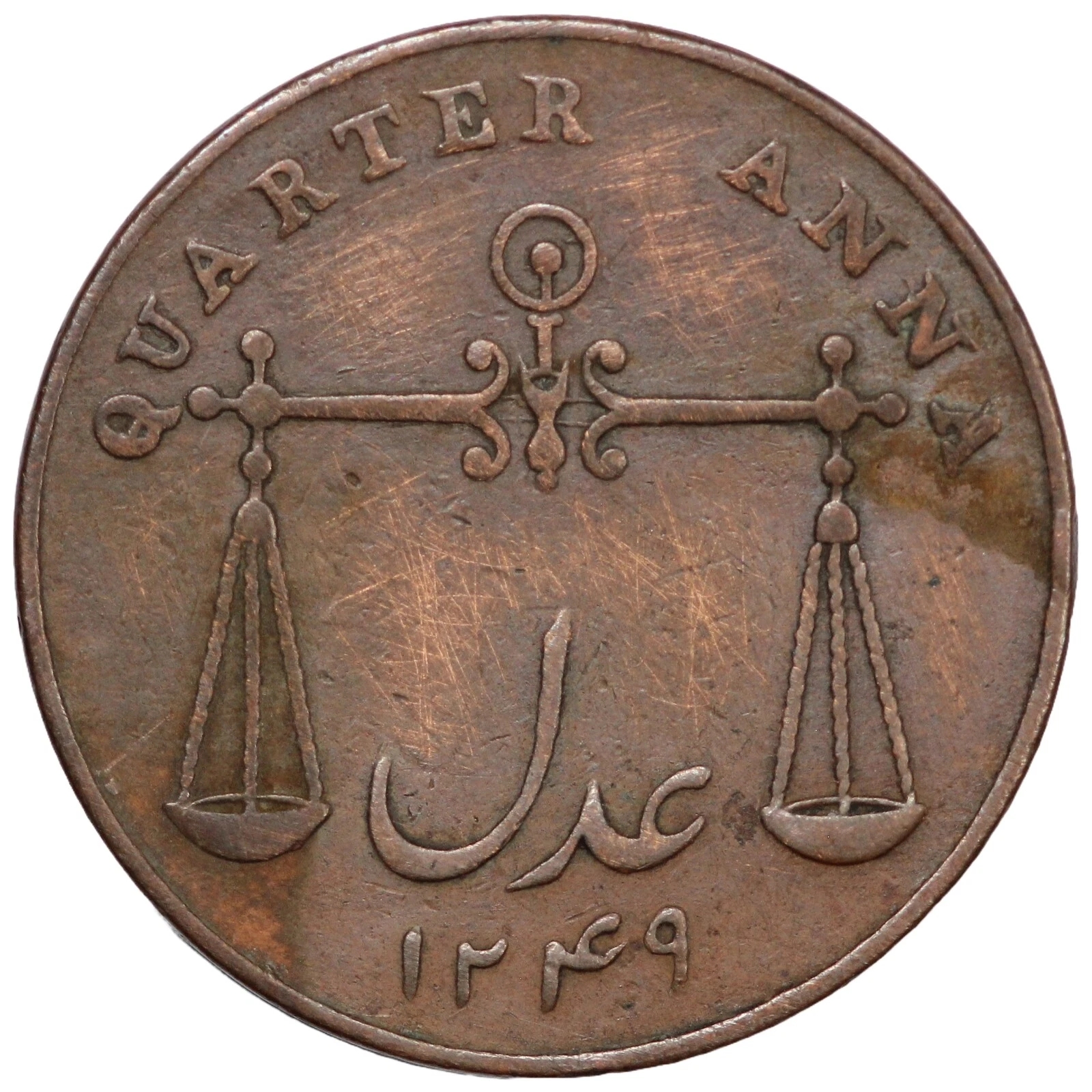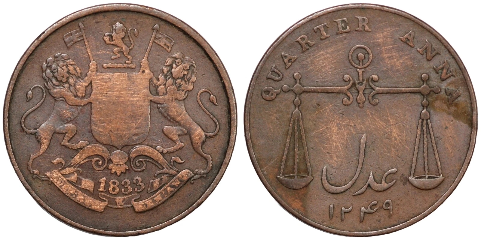 India-British. Bombay Presidency. 1833//AH1249 1/4 Anna. KM# 232.