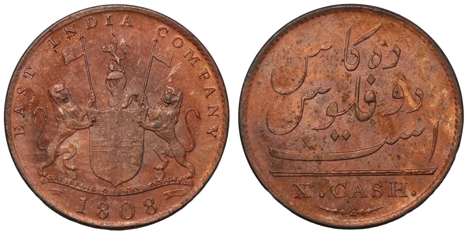 India-British, Madras Presidency. 1808 10 Cash. KM# 319.