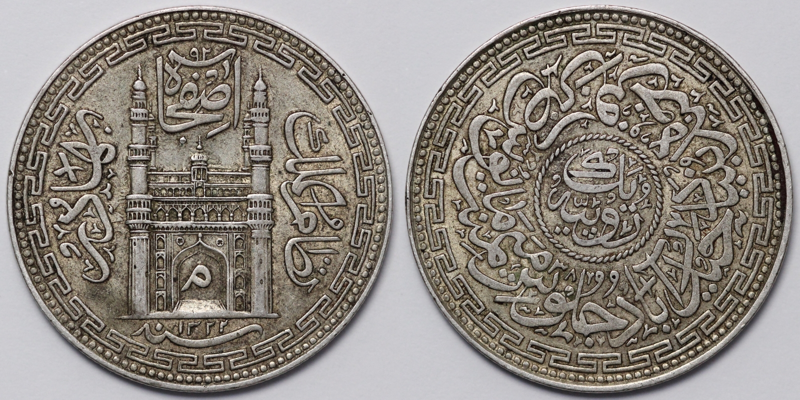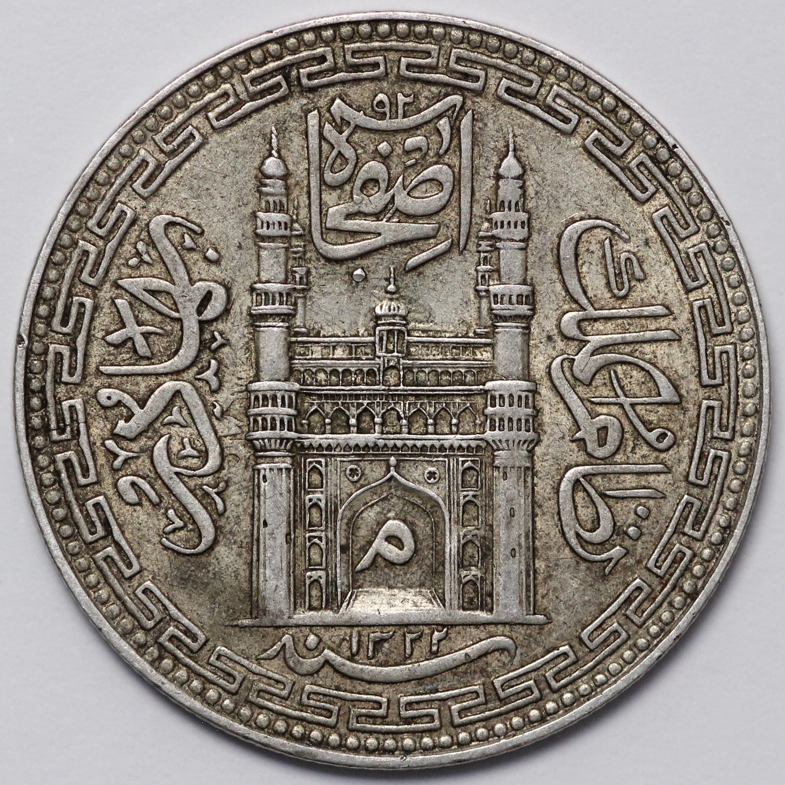 India-Princely States. Hyderabad. Mir Mahbub Ali Khan II. AR 1 Rupee. AH1322(1904)//RY38. Y# 40.1.