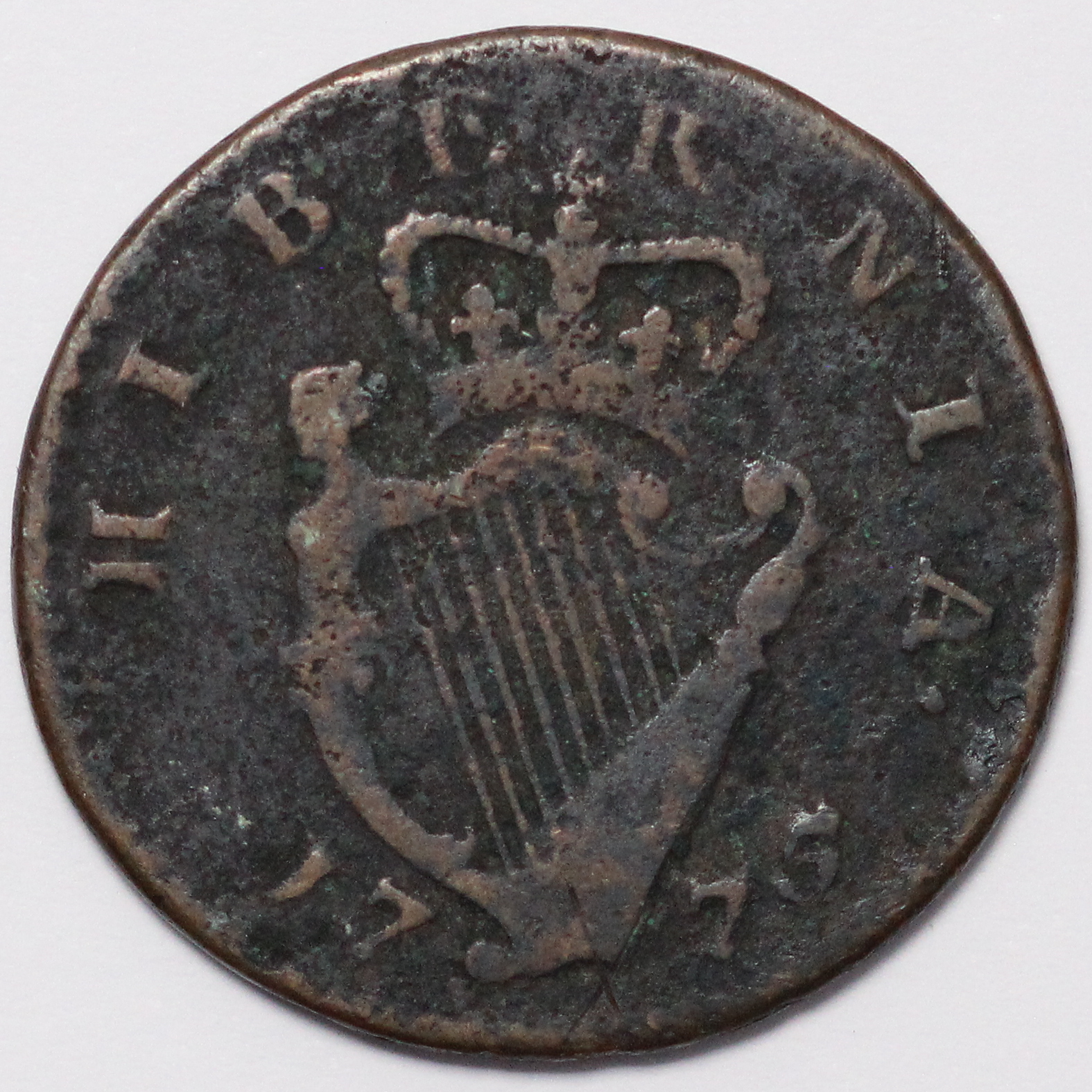 Ireland 1775 Halfpenny 1/2D George III Hibernia KM# 140. 7.96g, 28mm.