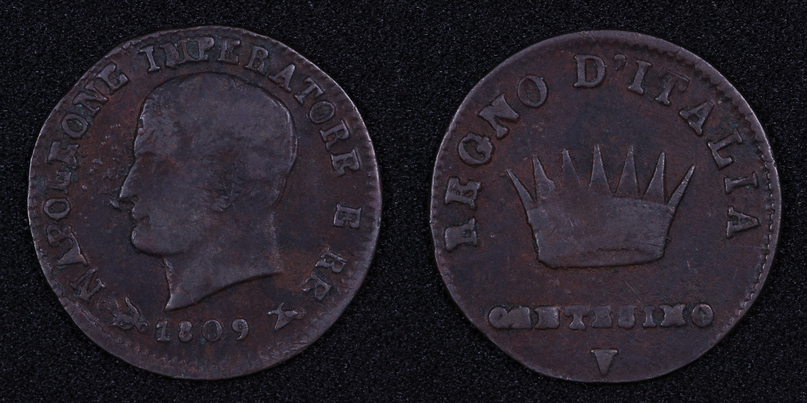 Italian States Kingdom of Napoleon 1809-V 1 Centesimo C #1.3 Venice Copper Coin