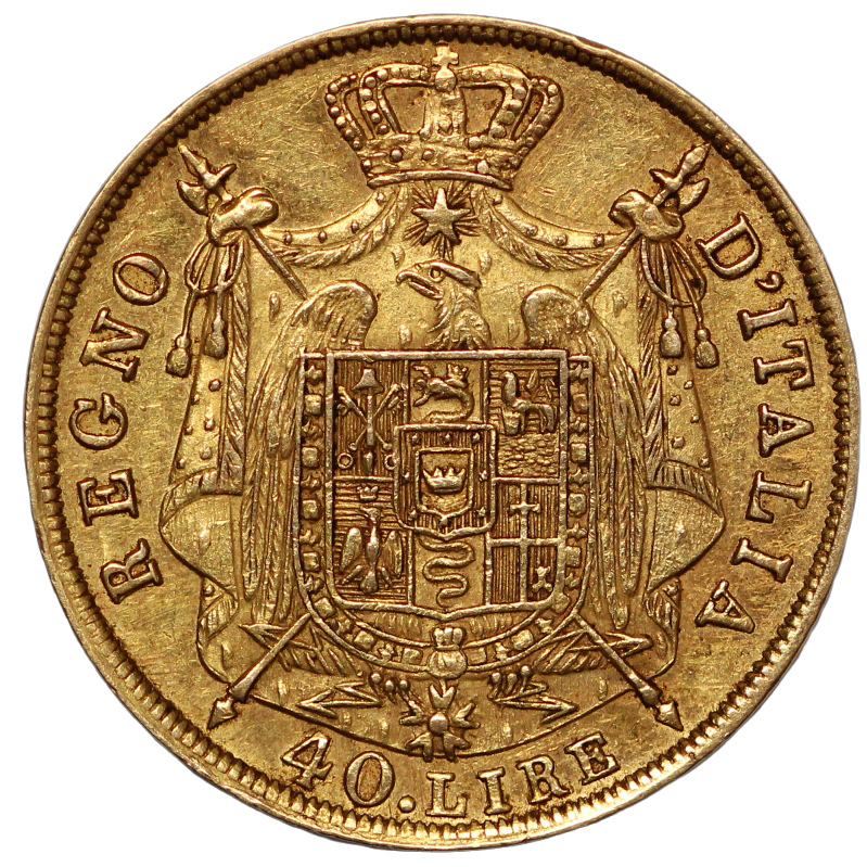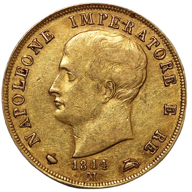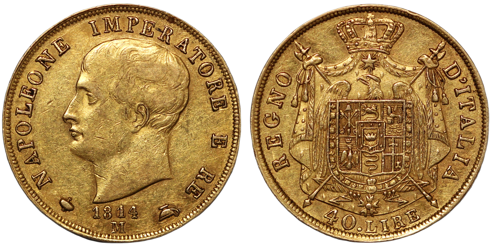 Italian States – Kingdom of Napoleon 1814/04-M Overdate 40 Lire. KM#12 (overdate not listed).