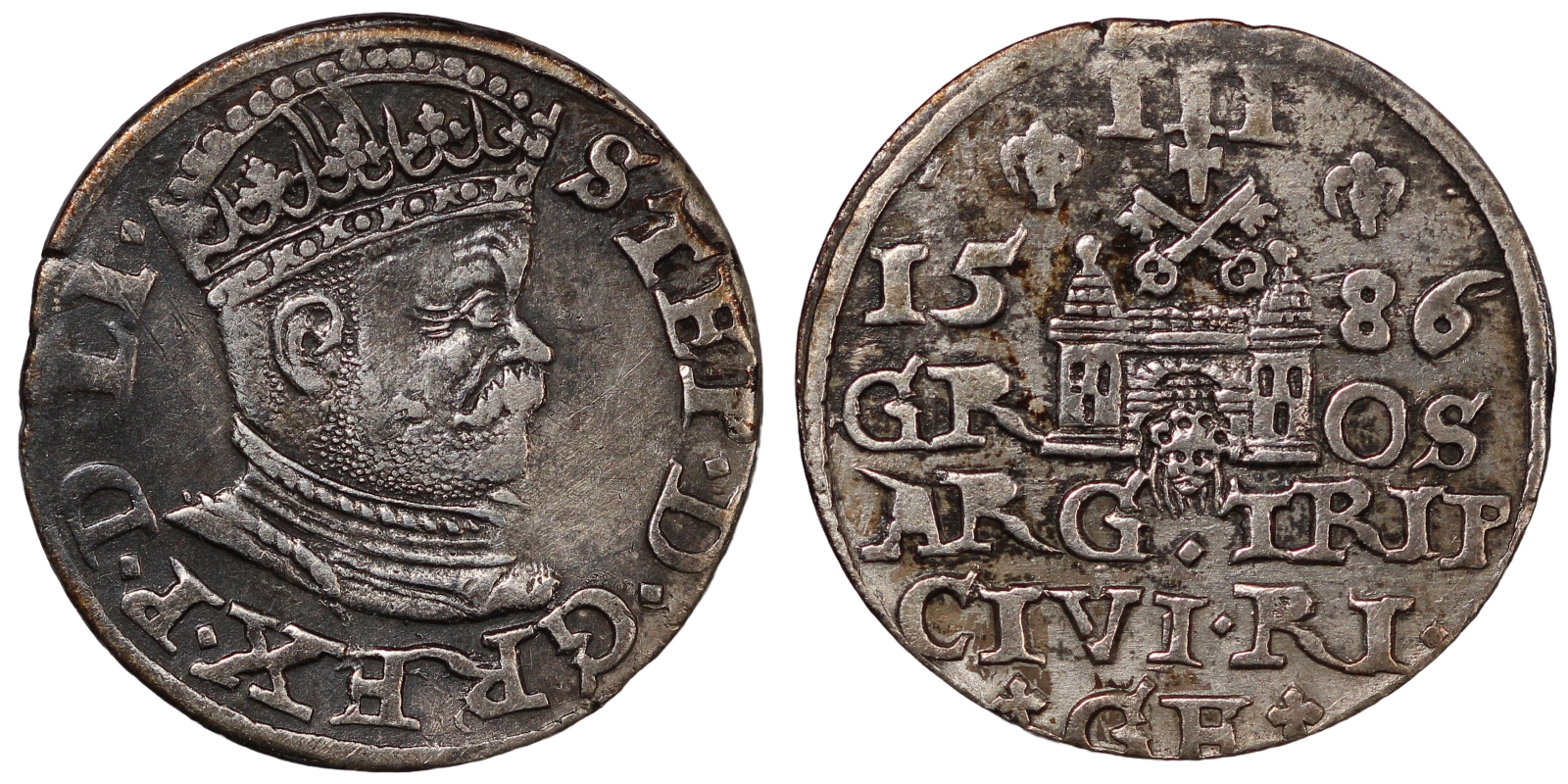 Livonia Riga (Poland) 3 Grosz 1586 – Stefan Batory (1576-1586).