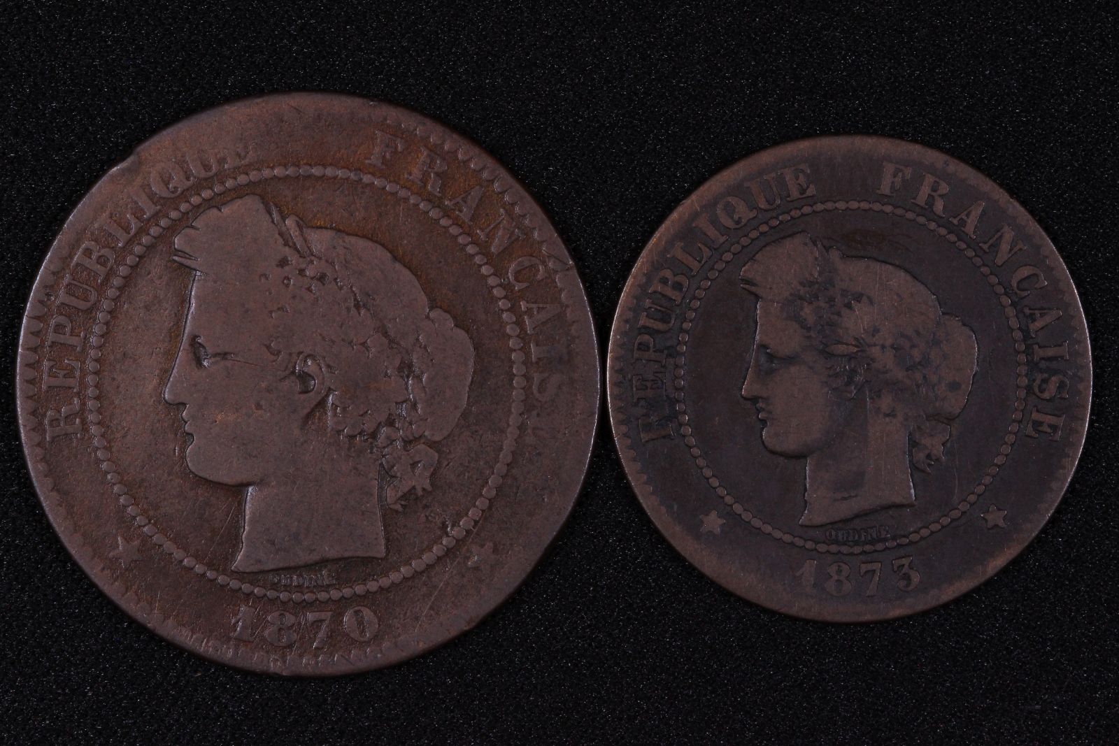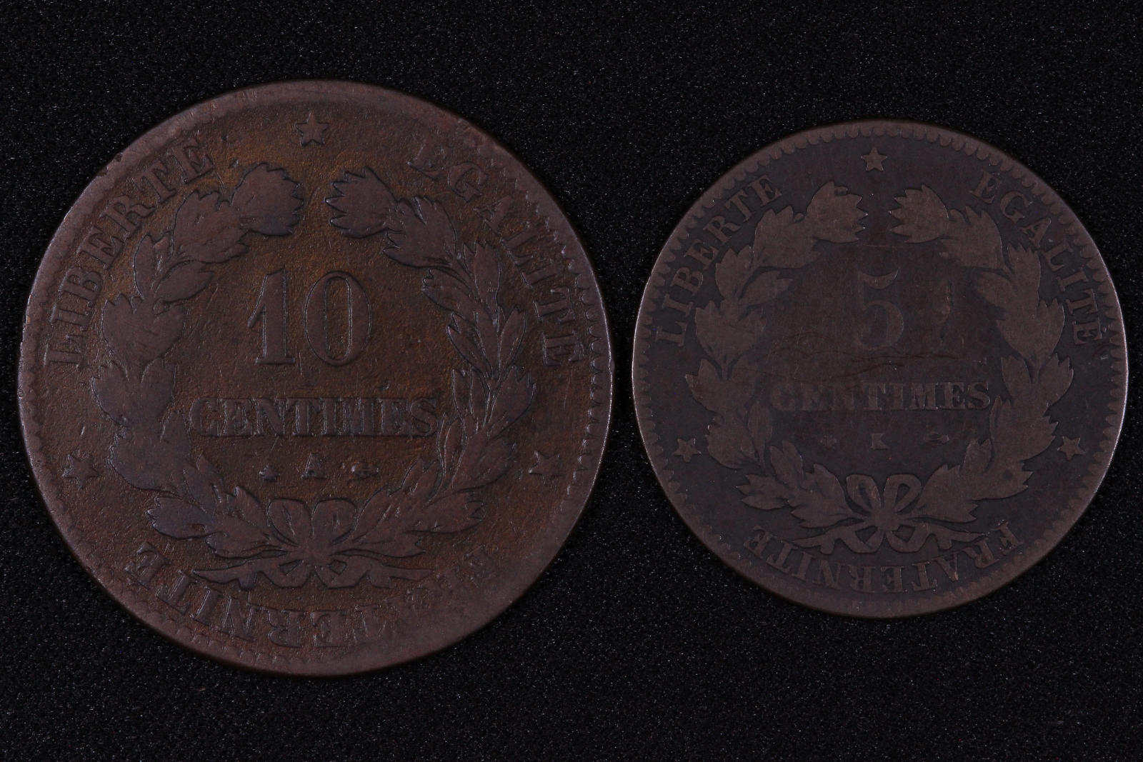 Lot of 2 France 1870A 10 Centimes & 1873K 5 Centimes KM#815.1 821.2 Bronze Coins