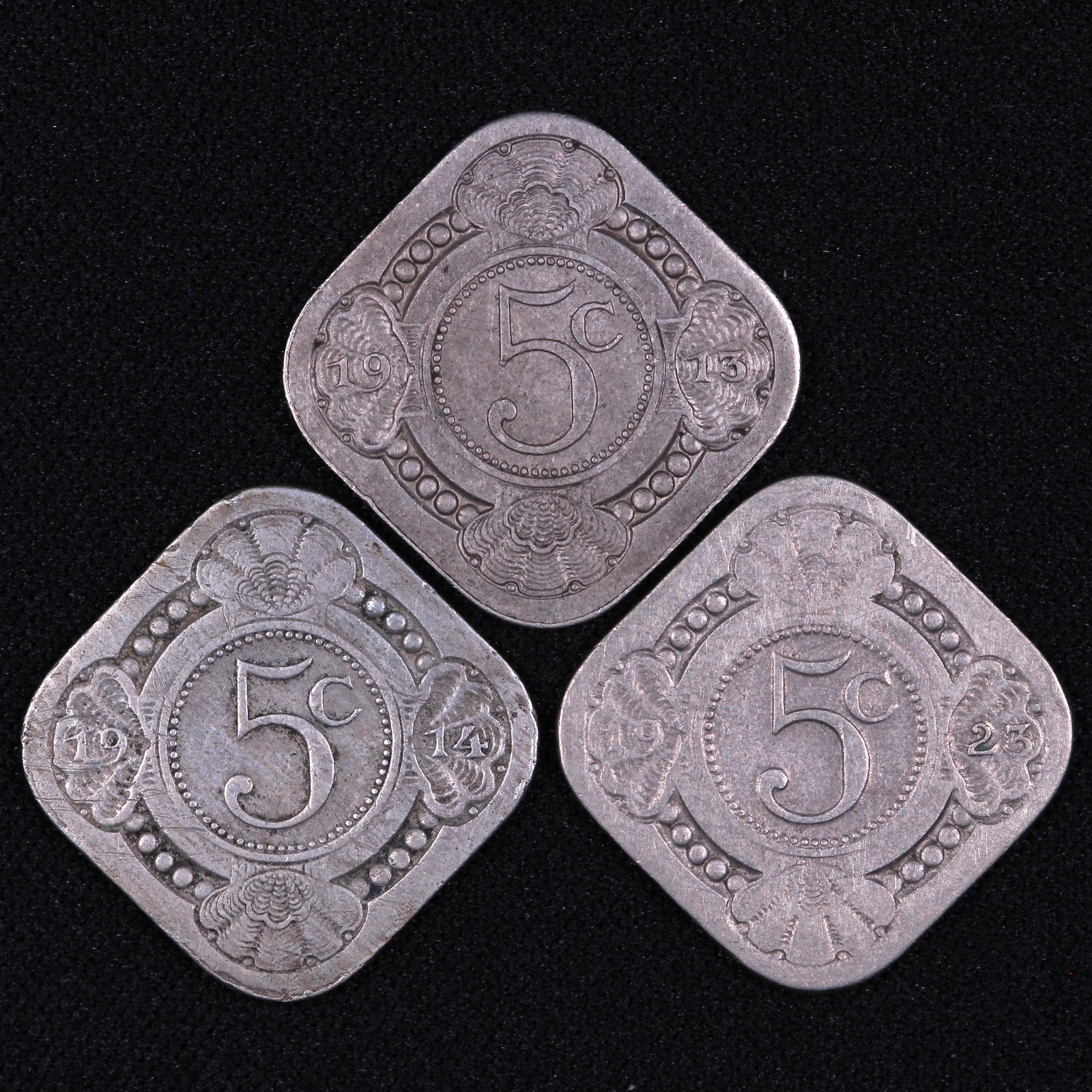 Lot of 3 Netherlands 1913 1914 & 1923 5 Cents KM# 153 World Copper-Nickel Coins