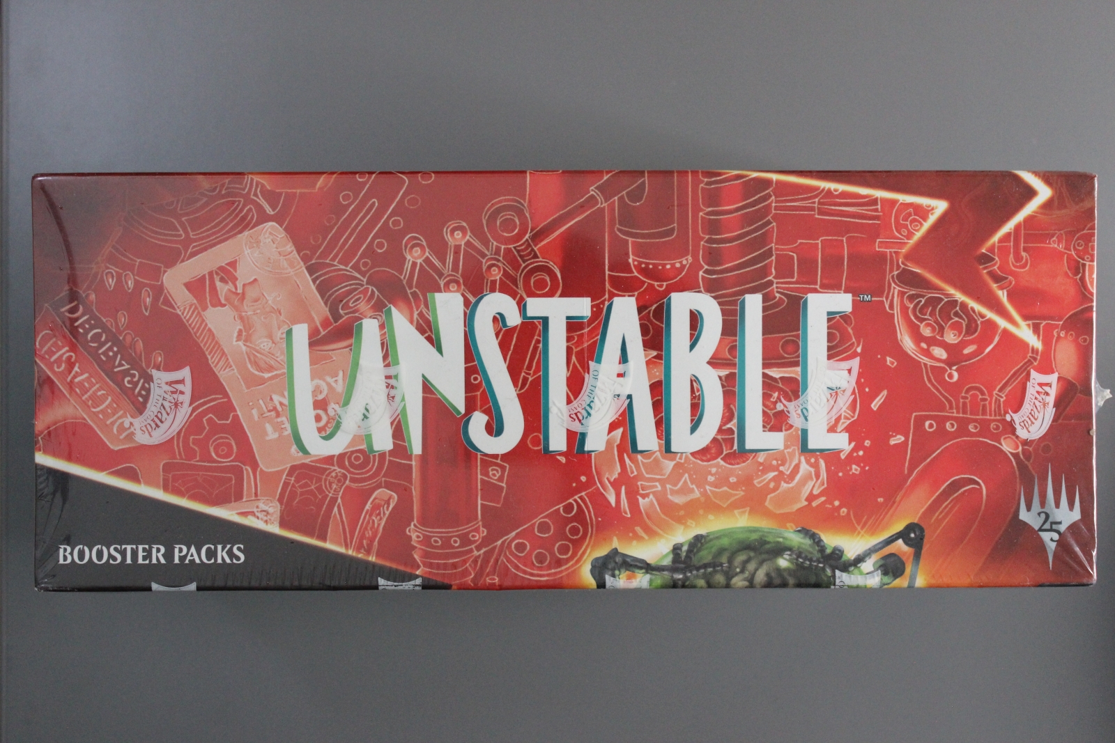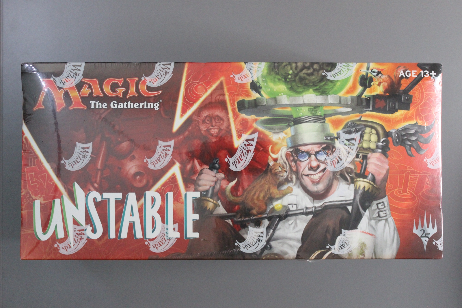 - UNSTABLE contains 15 randomly inserted silver-bordered cards per booster pack