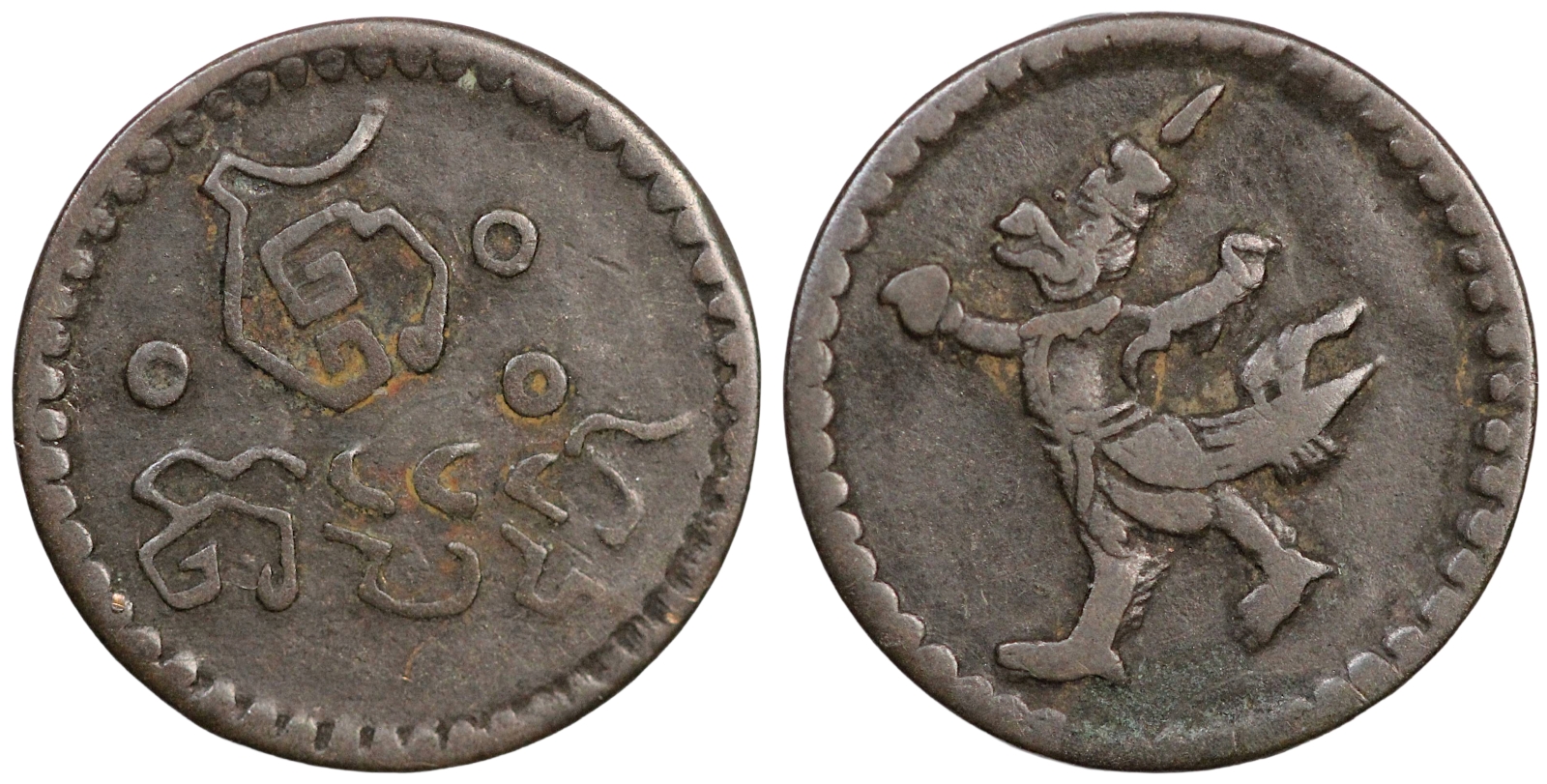 ND (1880) Cambodia 2 Pe KM# 30 Rare World Coin