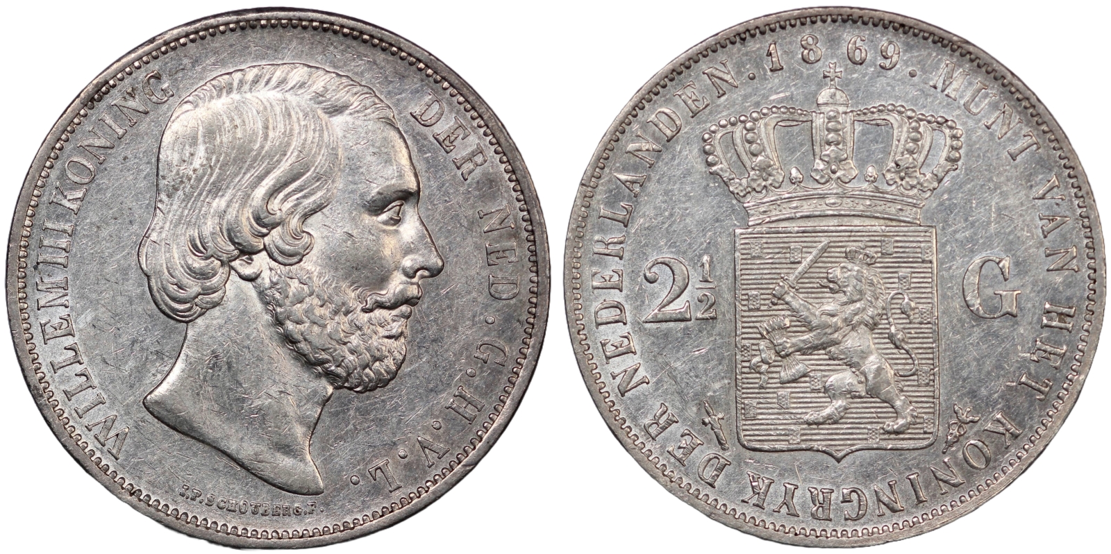 Netherlands 1869 2 1/2 Gulden. William III. KM# 82.