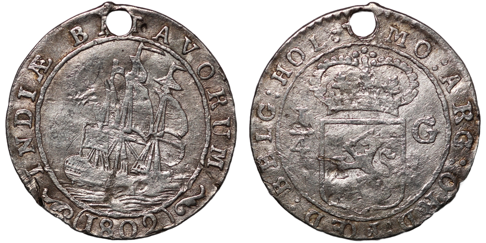 Netherlands East Indies, Batavian Republic, 1802 1/4 Gulden, KM# 81.