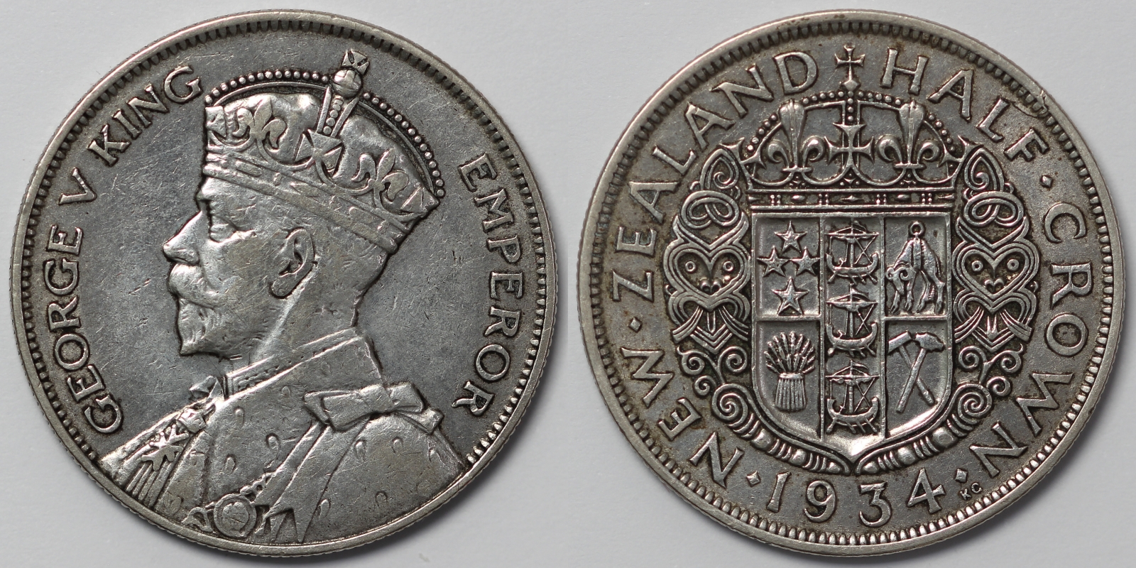 New Zealand 1934 Halfcrown 1/2 Crown. George V. KM# 5.