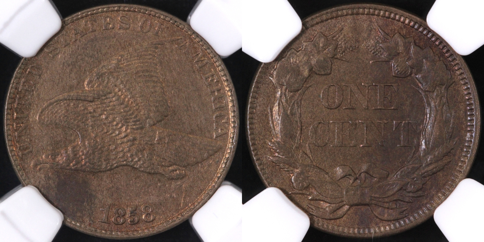 NGC Graded MS62 United States 1858 Flying Eagle Cent 1C Large Letters World Coin
