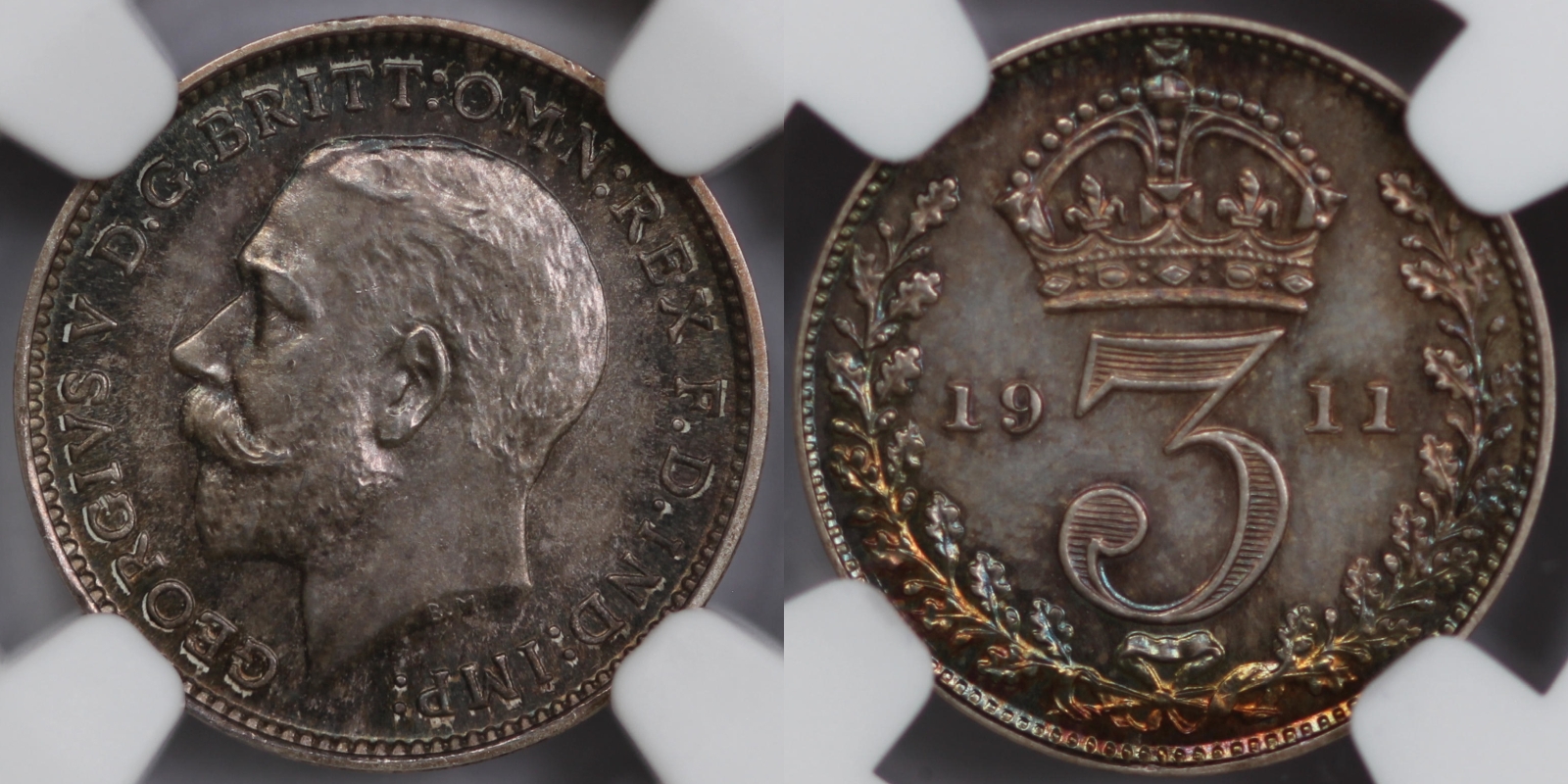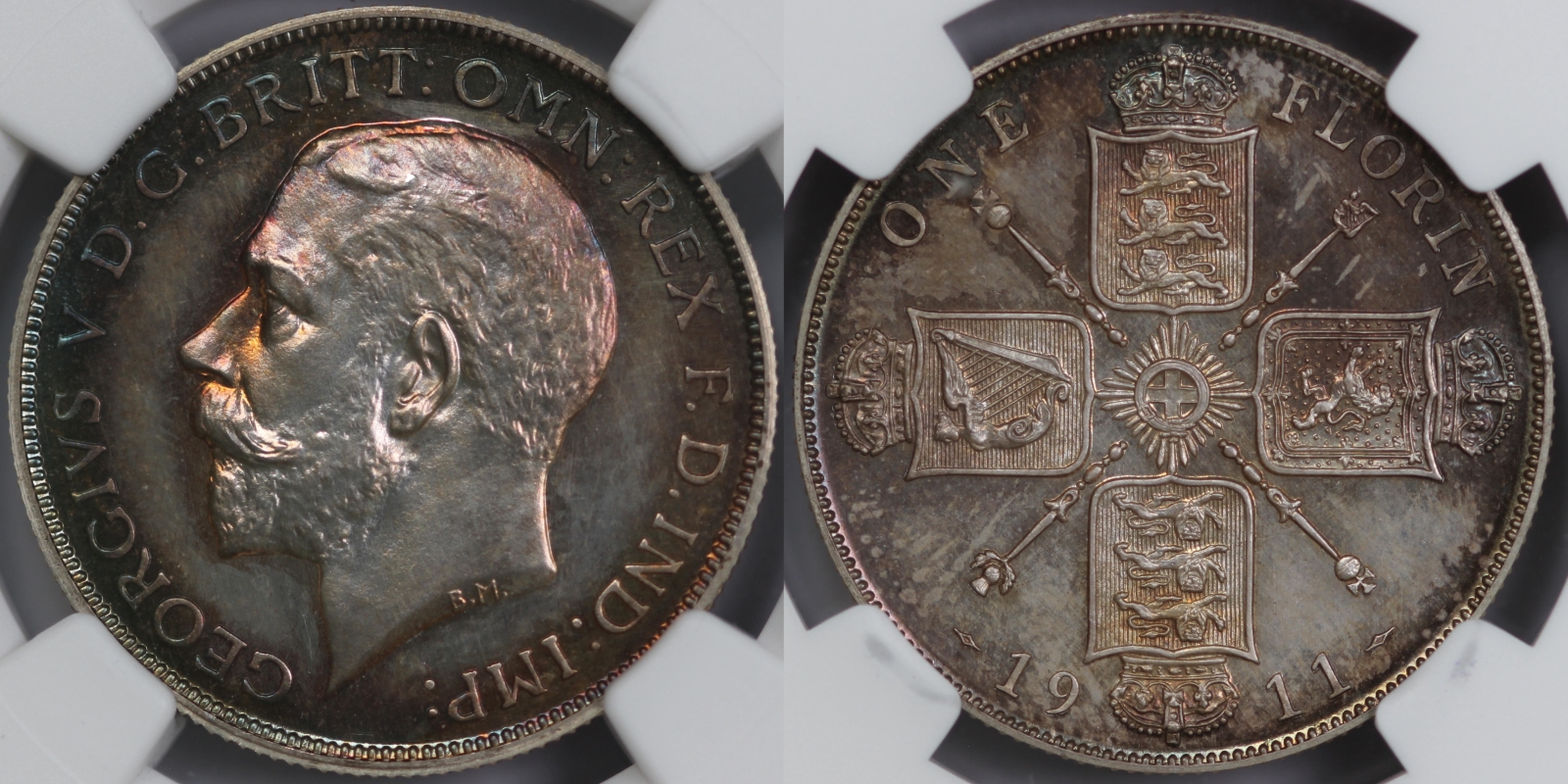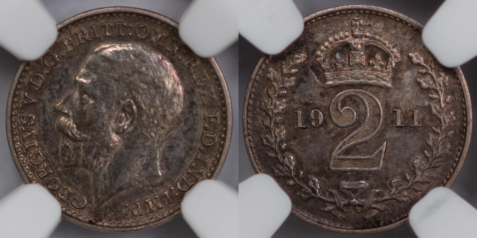 Great Britain 1911 Silver Halfcrown, Florin, Shilling, Sixpence and Maundy Set, NGC grades as follows: