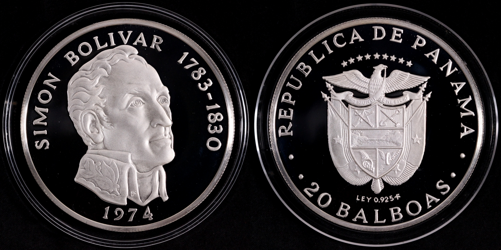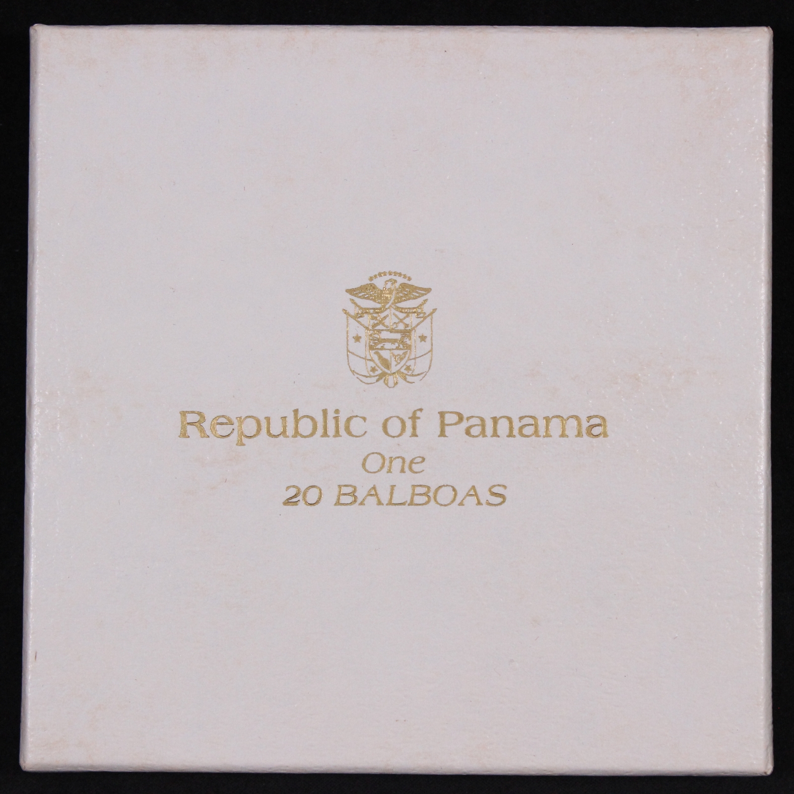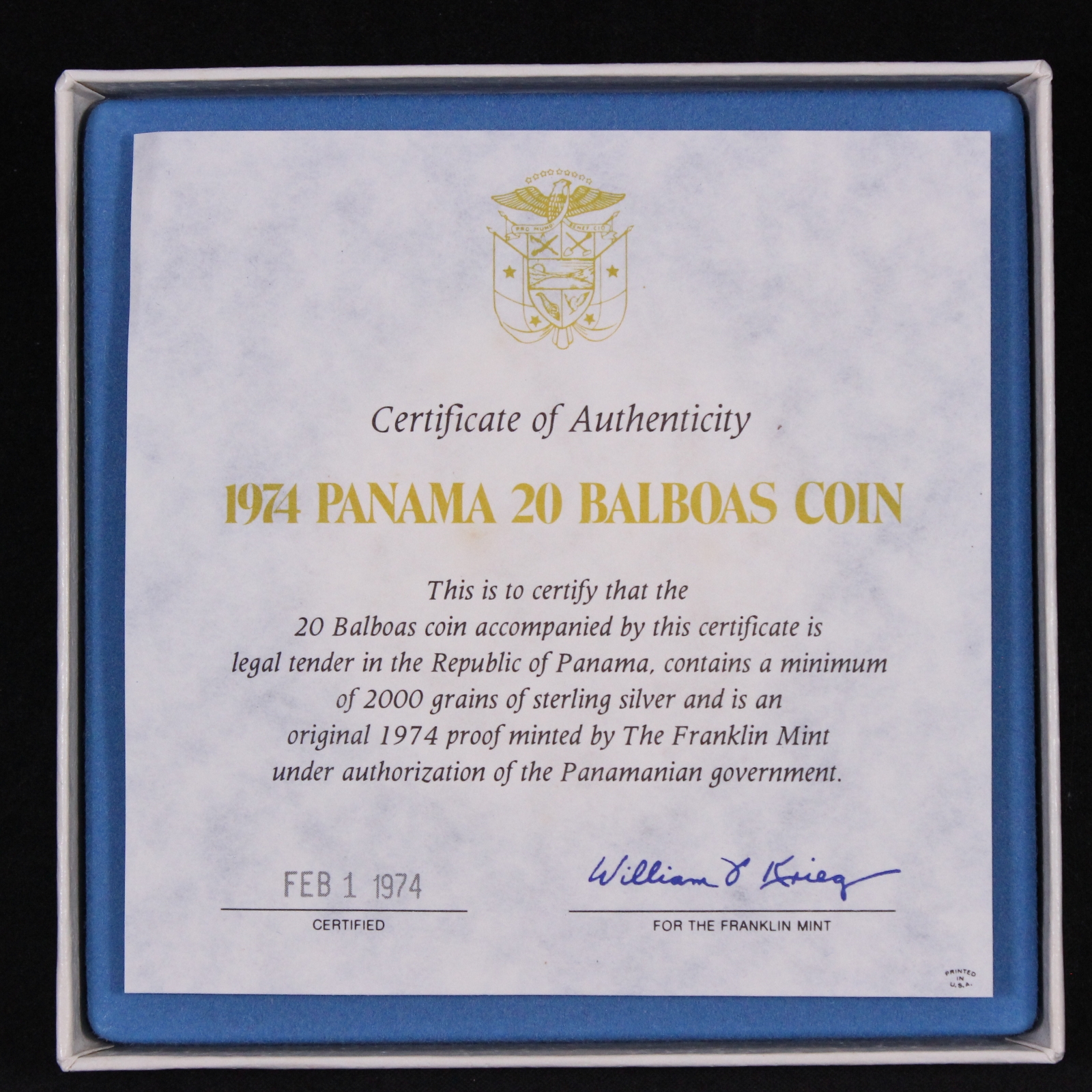 Panama 1974 20 Balboas Silver Proof Coin with CoA and box.