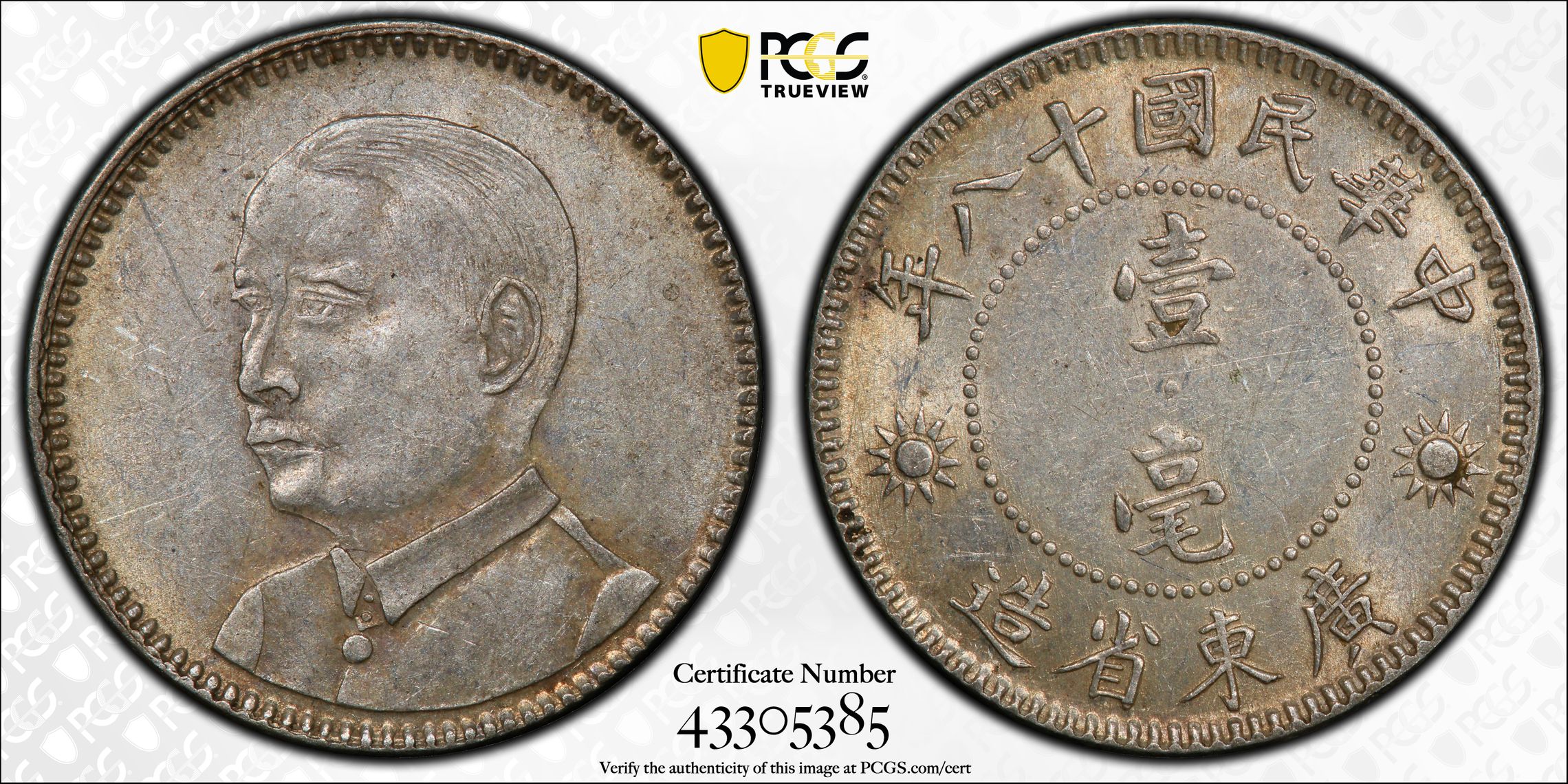 China-Kwangtung. 10 Cents, Year 18 (1929). KM-Y#425; L&M#160.